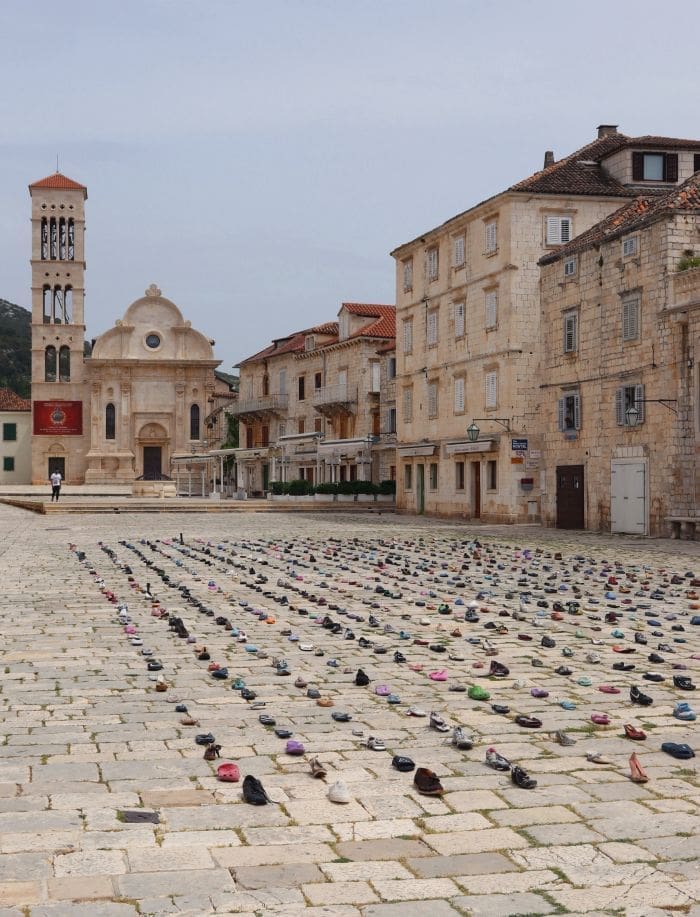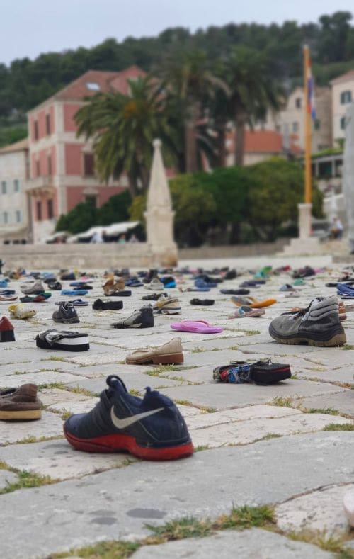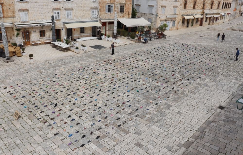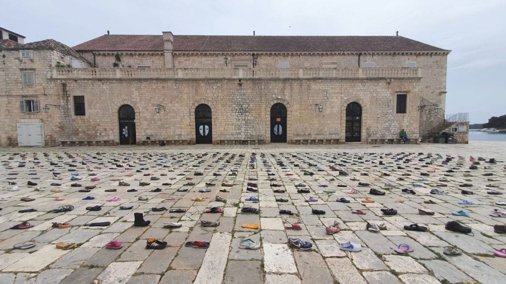 Instalaciju čini impresivna kolekcija obuće koju je izbacilo more, a sakupljana je protekle dvije godine u zimskim mjesecima po plažama otoka Hvara.