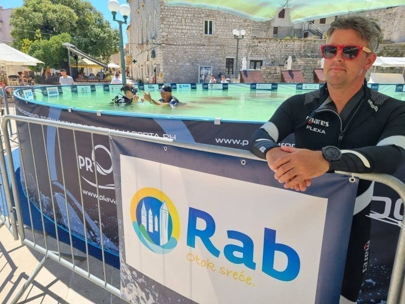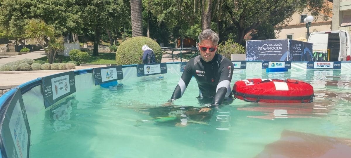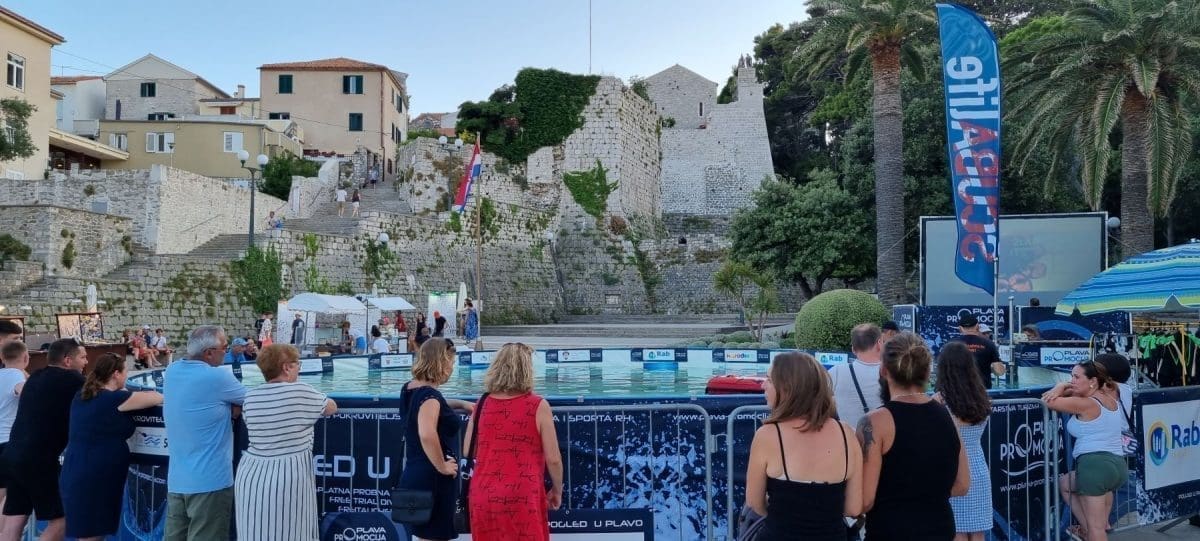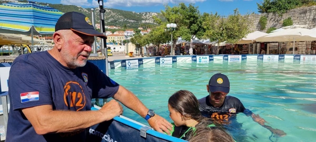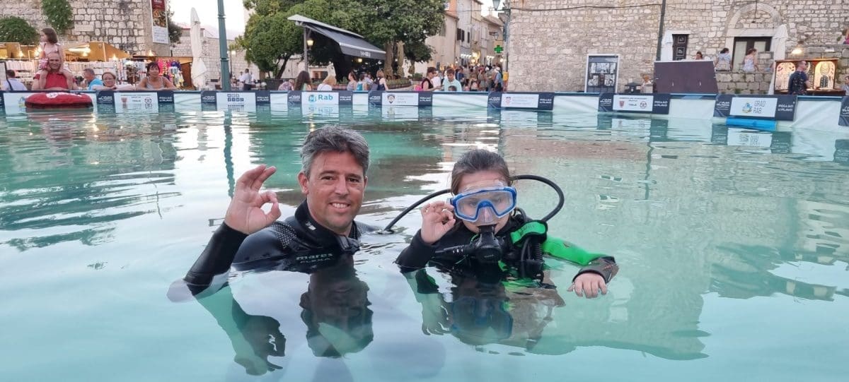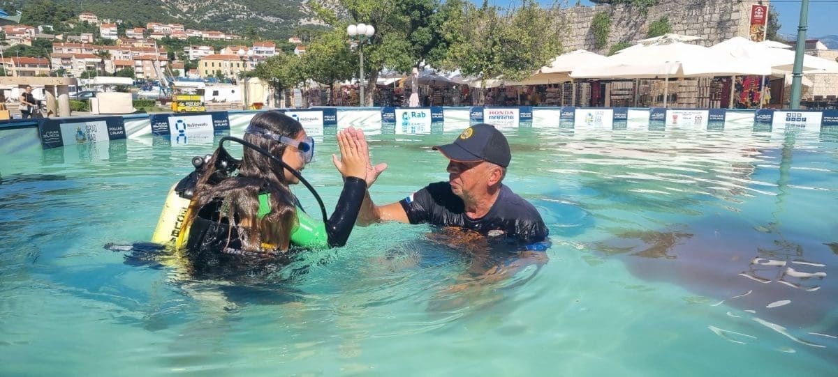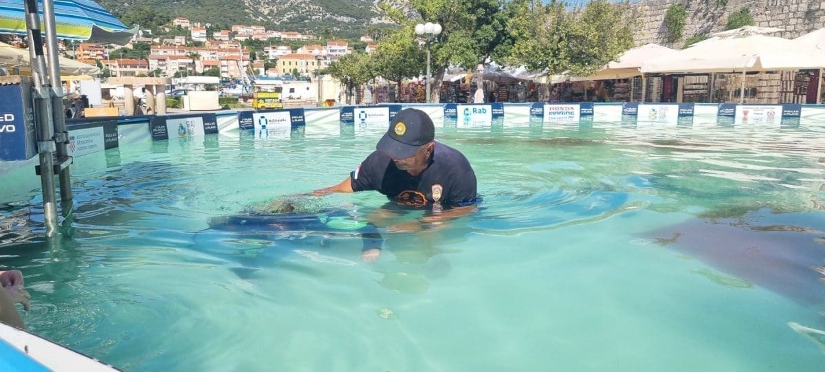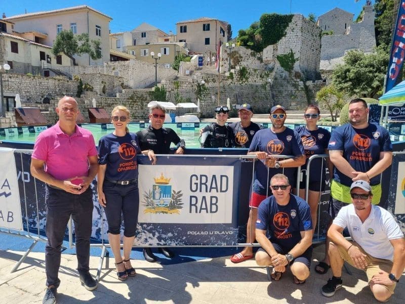 Pripadnici specijalističke ronilačke skupine Državne intervencijske postrojbe civilne zaštite podržali provedbu jubilarnog 80-tog nastupa projekta Pogled u plavo koji se je održavao na Trgu Sv. Kristofora u gradu Rabu.