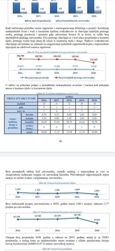 Takve podatke međutim u Ministarstvu još nisu imali jer se 'Statistički podaci vezani za pronalaske nedozvoljenih predmeta objavljuju se u Izvješću o stanju i radu kaznionica, zatvora i odgojnih zavoda. Izrada Izvješća za 2021. godinu je u tijeku.'