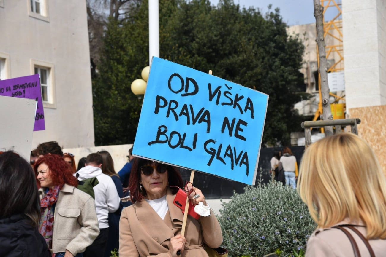 "Danas bi sve žene trebale biti ovdje jer još uvijek postoji niz razloga zašto moramo prosvjedovati za naša prava. Jedna smo od lošijih zemalja po pitanju femicida i po pitanju pristupa pobačaju. Žene u Hrvatskoj žive loše, što se ne bi reklo. Možemo danas izaći na ulicu i zahtijevati naša prava ali kad se pogledaju podaci žene su u Hrvatskoj, danas, itekako ugrožene", kazala je profesorica sociologije Valerija Barada.