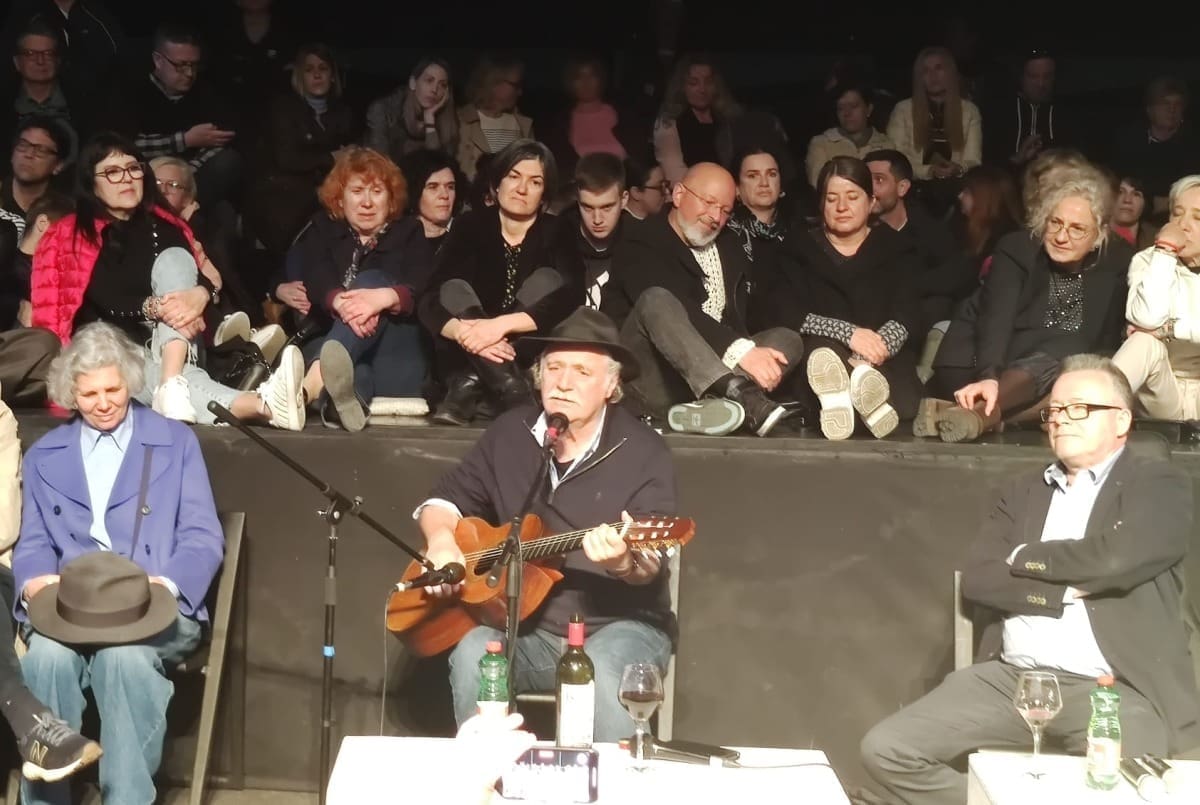 Večeras je na Pričigin ponio i gitaru te je publici odsvirao i nekoliko pjesama, a pridružit će se i završnici Festivala koja će se održati u subotu, 25.ožujka, točno u podne pod nazivom 'Moglo je i svršit gore', a bit će posvećena Miljenku Smoji.