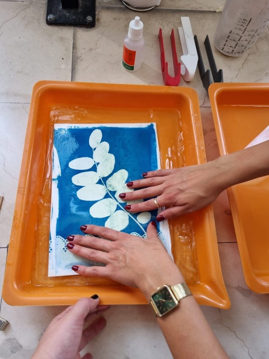 Tijekom radionice bit će održana prezentacija o povijesti cijanotipije i polaznici će se upoznati s tehnikom i procesom kako pripremiti papir koristeći odgovarajuće kemikalije. Polaznici će izraziti svoju kreativnost bez upotrebe digitalnih medija izradom nacrta biljaka i svakodnevnih predmeta na papiru. Svaki polaznik imat će priliku eksperimentirati s cijanotipijom na papiru visoke kvalitete stvarajući plave slike koje će moći zadržati