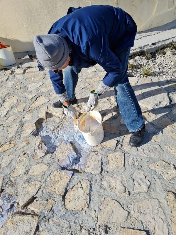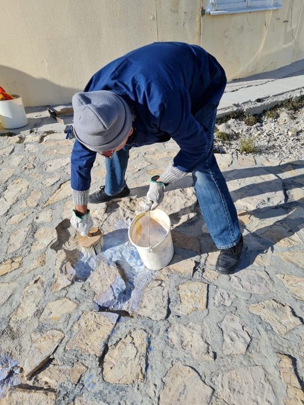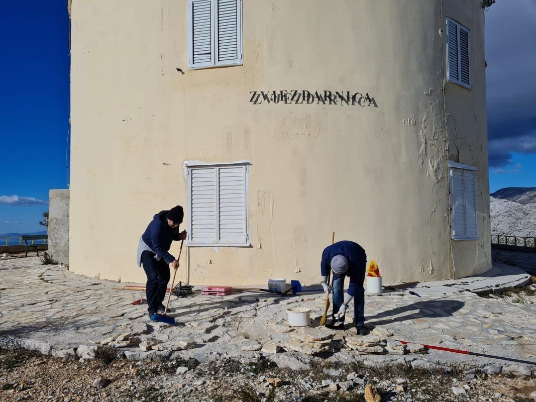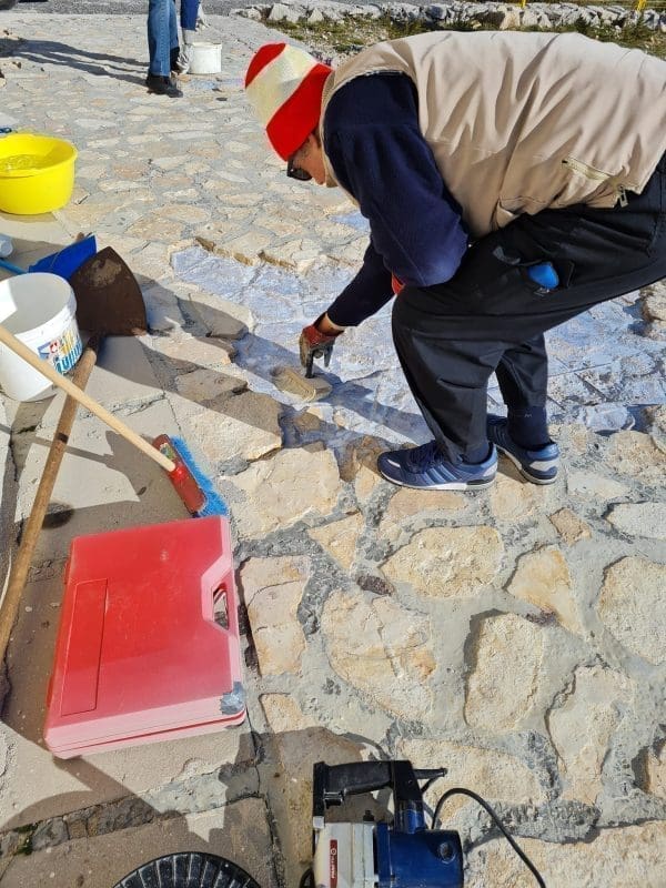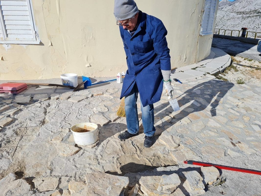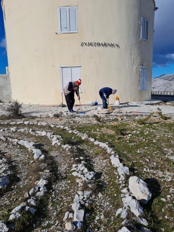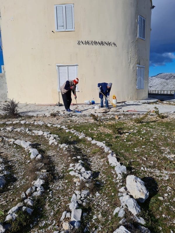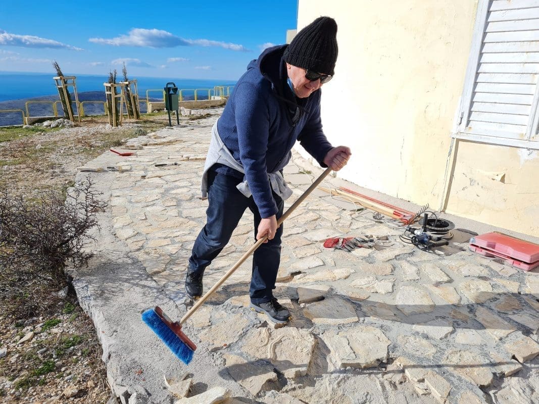 Sunčano i prohladno prijepodne subotom, dugogodišnji član Zvjezdanog sela Mosor Zoran Brčić, koji je i član Upravnog odbora, te astronom-animator Zvjezdanog sela Mosor Zoran Knez i tajnik Udruge Tomislav Nikolić provode sanirajući oštećenu pješačku stazu, koja vodi prema ulazu u Zvjezdarnicu.