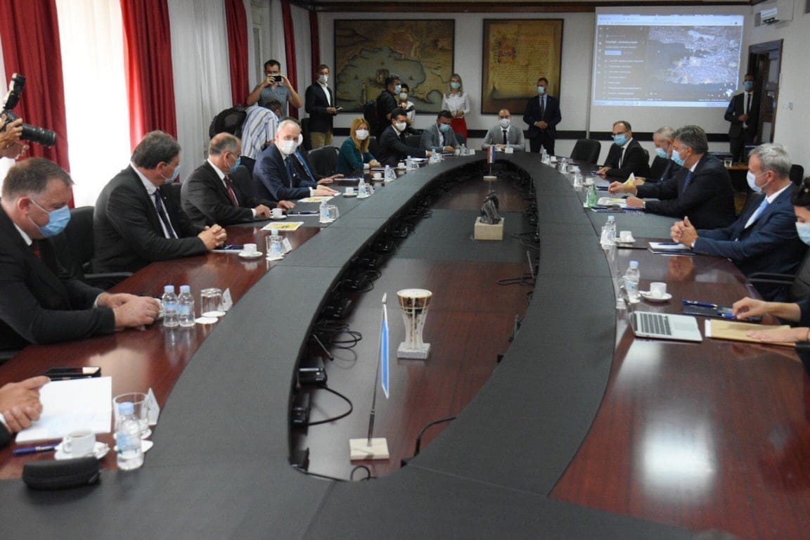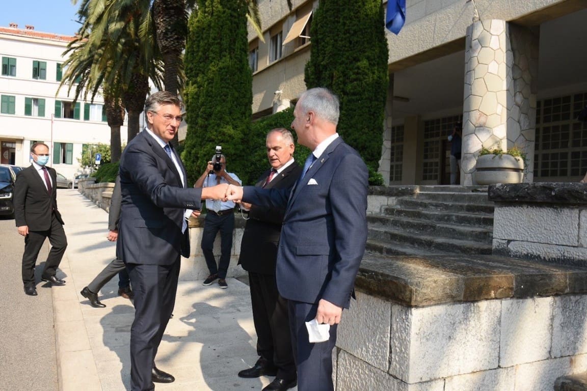 Predsjednik Vlade Andrej Plenković jutros se sastao sa splitskim gradonačelnikom Androm Krstulović Oparom i Blaženkom Bobanom, županom Splitsko-dalmatinske županije. Predsjednika Vlade ispred Banovine je dočekalo desetak radnika "Dalmacijavina".