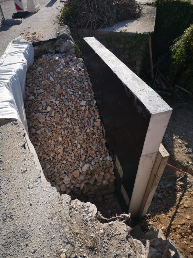 6. rujna ove godine krenuli su radovi izgradnje potpornog zida u Ulici Rakite u Žrnovnici. Naručitelj je Grad Split, a izvođač tvrtka Point d.o.o.
