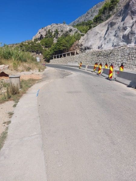 "Radovi na sanaciji odrona su zbog turističke sezone prekinuti te će se isti nastaviti po završetku iste. Završeni su radovi prve faze kojima su osigurani sigurnosni uvjeti za uspostavu privremene regulacije dvosmjernog prometa bez semaforskih uređaja na način da je vozni trak uz nestabilni pokos privremeno zatvoren te je dvosmjerni promet osiguran preko postojećeg odmorišta (koji se zbog navedenog pojačano održava) i druge vozne trake.