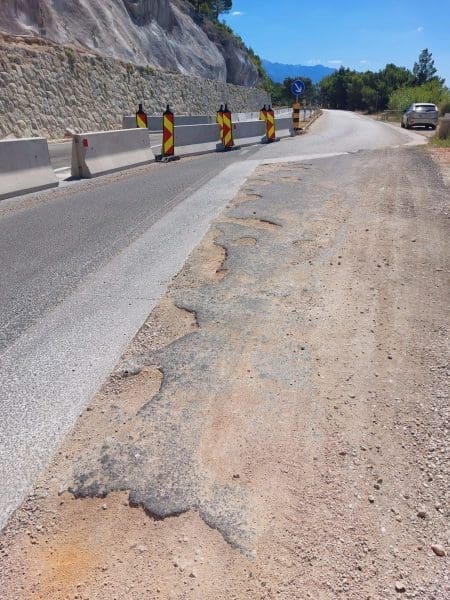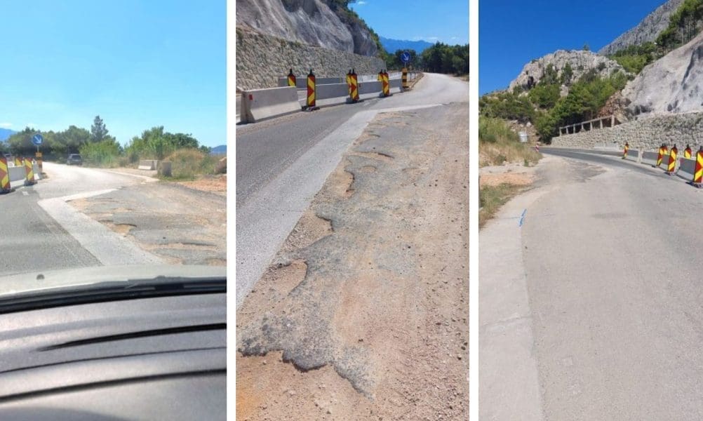 Pazite, u srcu sezone iako su obe trake prometne i ne odvijaju se radovi oni puštaju promet preko odmarališta. Ajde nekako bi se i dalo razumit to sve skupa da su se udostojili barem malo to pripremit za promet koji se odvija Jadranskom magistralom D8 u srcu sezone. Volija bi vidit tu odgovornu osobu u HC-a (Hrvatskim cestama) koja je dozvolila ovakav način odvijanja prometa. Pogledajte molim vas lipo o kakvom off roadu se ovde radi. Ovakvo stanje je jednostavno nedopustivo. Je li se cestarine radi ovoga plaćaju, unda se vozimo po ovakvim cestama i uništavamo aute. Molim odgovor odgovornih", poslao nam je čitatelj.