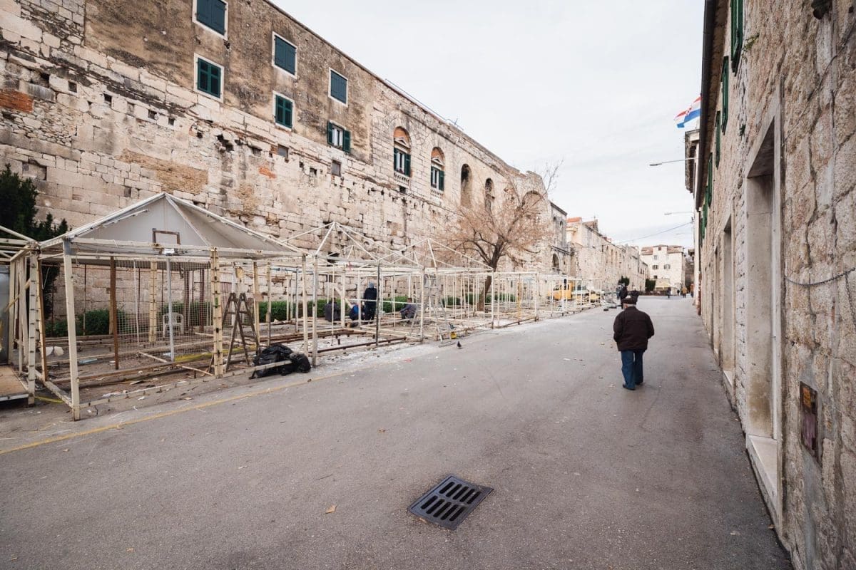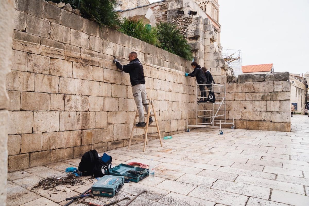 Jutros iz Grada Splita javljaju da su u propugnaculu Srebrnih vrata u tijeku radovi čišćenja zidova nakon uklanjanja štandova.