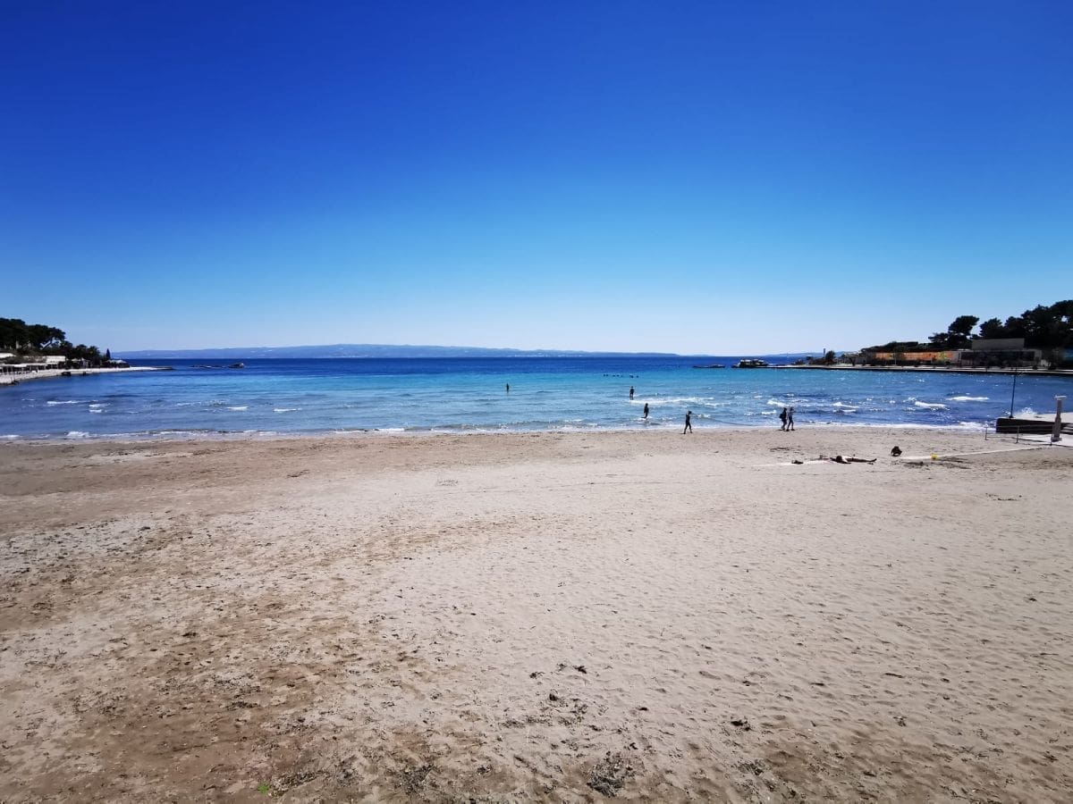 Iako smo u ovo doba godine popularno kupalište navikli vidjeti prepuno kupača i turista, sada se tek pokoji Splićanin može vidjeti kako uživa u svježem moru ispod nebeskog plavetnila.