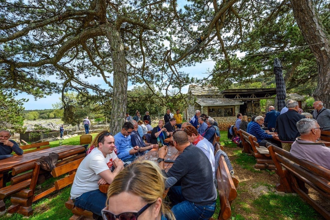 "Dolaze stranci, ali i naši, nema pravila. Radimo samo po narudžbi, treba se rezervirati i osigurati sebi mjesto. Spremamo tradicionalnu hranu - sir, pršut, peke, janjetinu na ražnju. U principu sve se vrti oko janjetine. Nema ništa modernoga, minimalna dekoracija, idemo samo na kvalitetu. Sve je domaće, bračka janjetina, domaći sir, pršut, vino. Sve ono najbolje šta Brač nudi mi njima prezentiramo", kaže nam Ivan Gospodnetić.