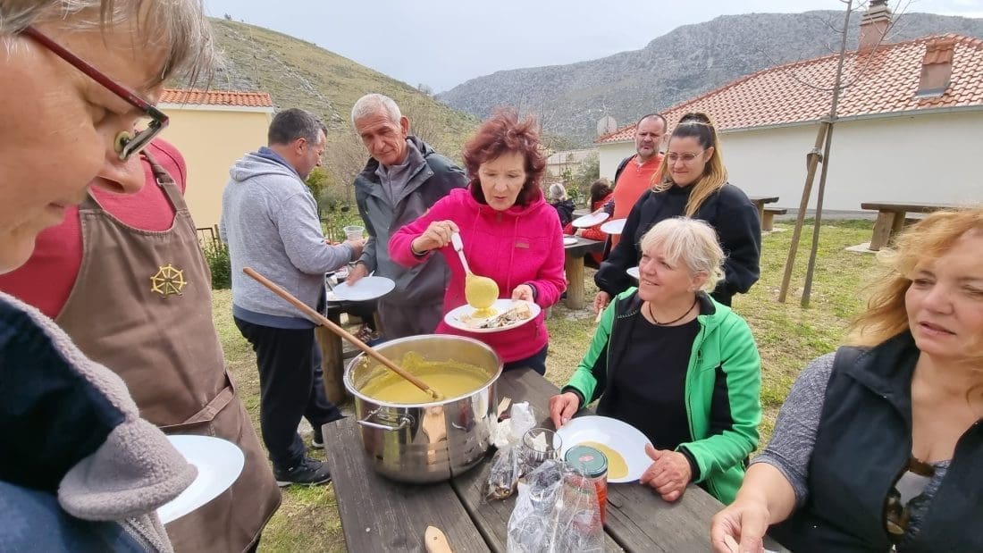 Tako su mogli čuti više o zaštićenom lokalitetu Zmijin kamen na Žminjači koji je dio bogatog naslijeđa praslavenske mitologije na ovom području, slušali su o tradicijskom ribolovu, odnosno kako se nekad lovila jegulja u rijeci i kanalima, slušali su o važnost reljefa na pročelju crkve Uznesenja BDM u centru Žrnovnice, posjetili Dvore u kojima se nalaze povijesni Turski most, kao i Turska kula. Na samom izvoru malo je tko propustio priliku piti čistu i hladnu vodu, a potom su polaznici posjetili najstariji objekt u Žrnovnici, crkvicu Sv. Mihovila koji se nalazi na Gračiću, inače neistraženom rimskog nalazištu. Polaznike je u svojoj tradicionalnoj i iznimno zanimljivoj dalmatinskoj konobi ugostio mještanin Jozo Mihanović. Izlet je završio ispred prostorija udruga gdje se pekla pastrva iz ribnjaka te kuhala pura koja je samljevena u Antoničinom mlinu na rijeci Žrnovnici.