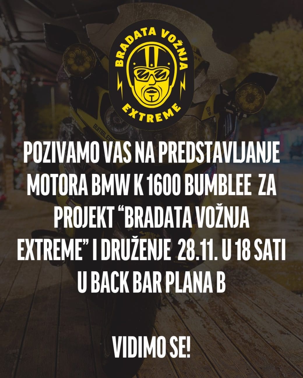 Ovaj petak u 18 sati u Back Baru PLAN B bit će predstavljena i BMW K 1600 Bumblebee – motocikl s kojim Rakela vozi cijeli projekt.