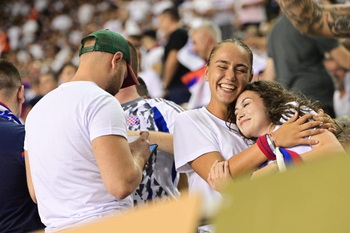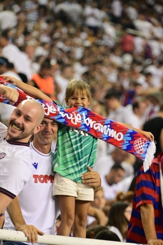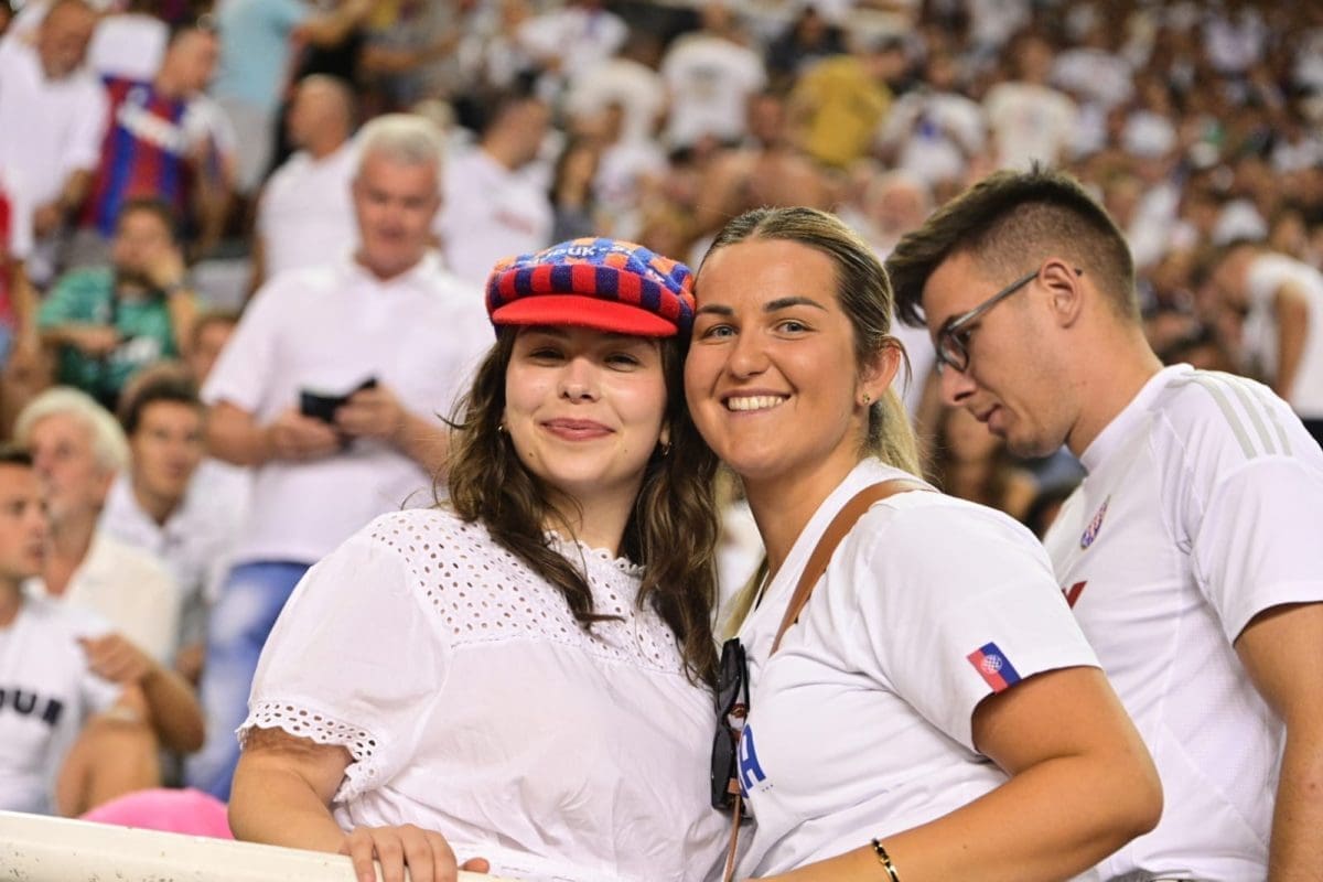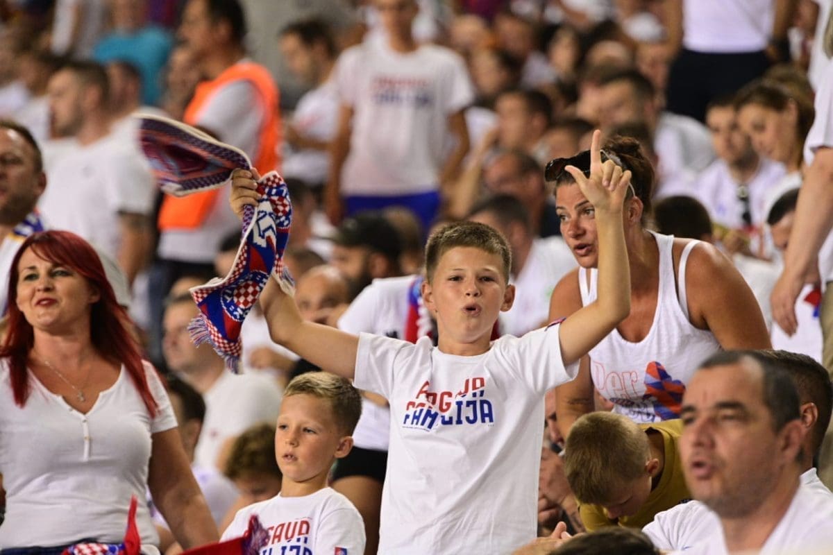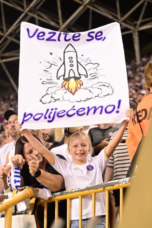 A jedna mala navijačica posebno nam je zapelaza oko. Naime, podignula je transparent na kojem je nacrtana raketa, a piše: 'Vežite se, polijećemo'.