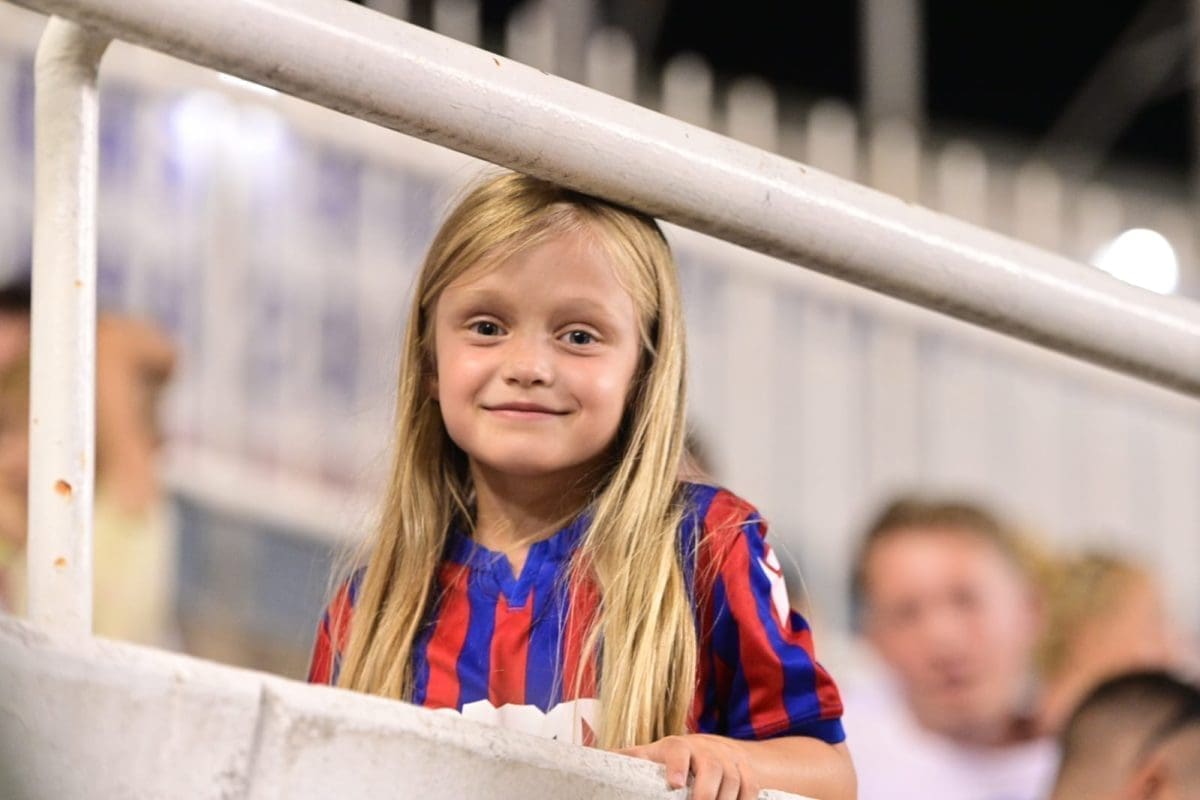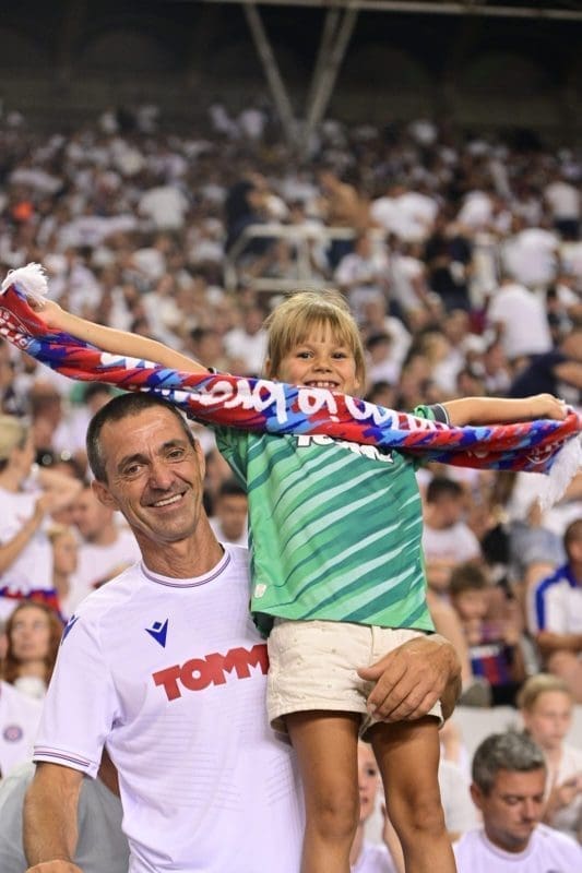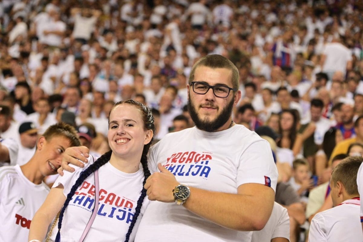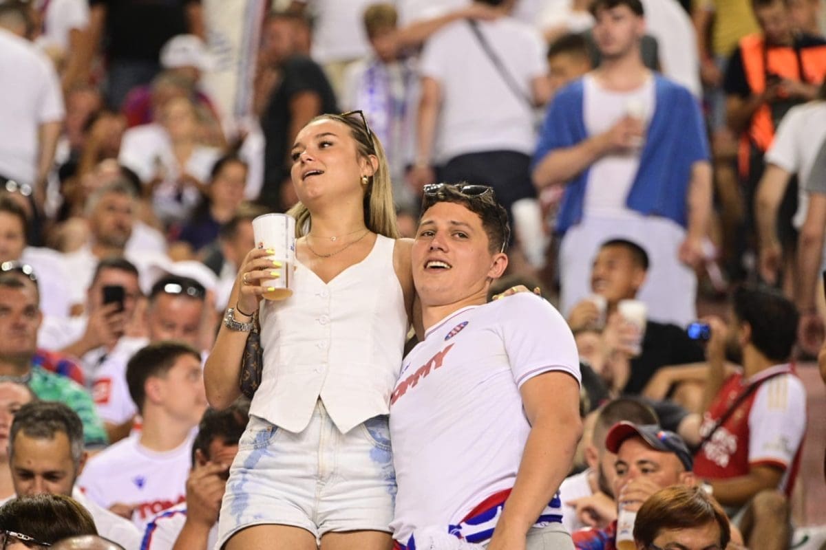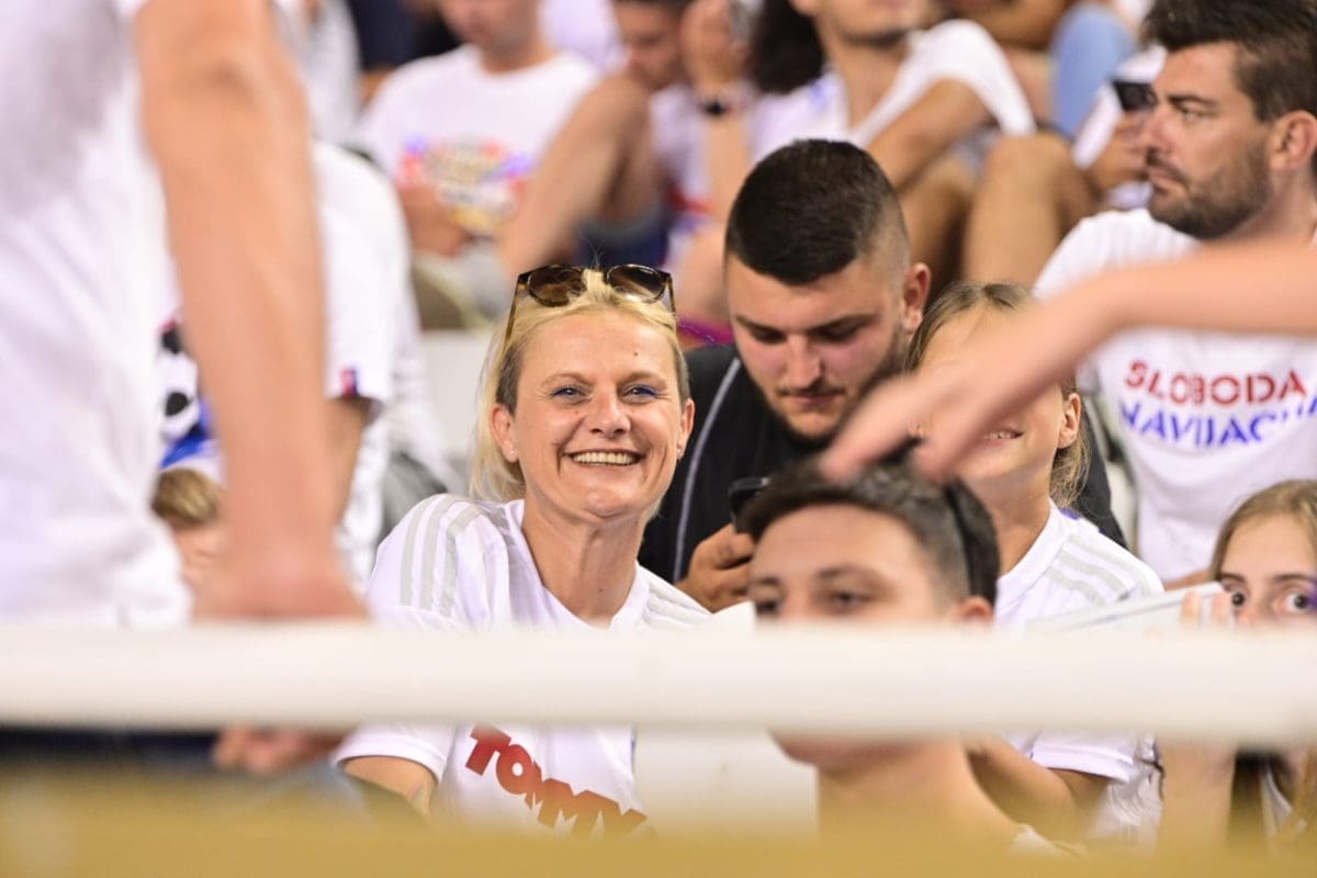A jedna mala navijačica posebno nam je zapelaza oko. Naime, podignula je transparent na kojem je nacrtana raketa, a piše: 'Vežite se, polijećemo'.