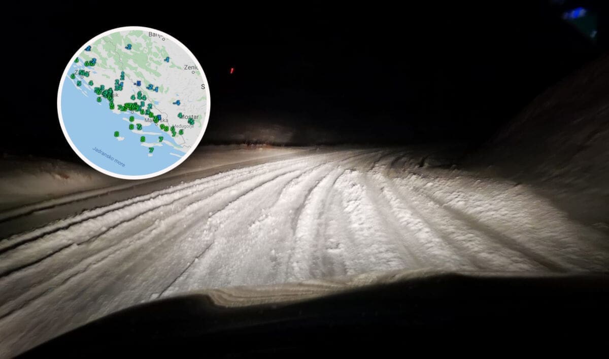 Snijeg mjestimice pada u Gorskom kotaru, Lici, na širem riječkom području, središnjoj Hrvatskoj i zaleđu Dalmacije. Zbog niskih temperatura moguća je poledica, posebice na mostovima i nadvožnjacima u unutrašnjosti. Vozače upozoravamo da prilagode brzinu i način vožnje uvjetima na cestama te da na put ne kreću bez zimske opreme.