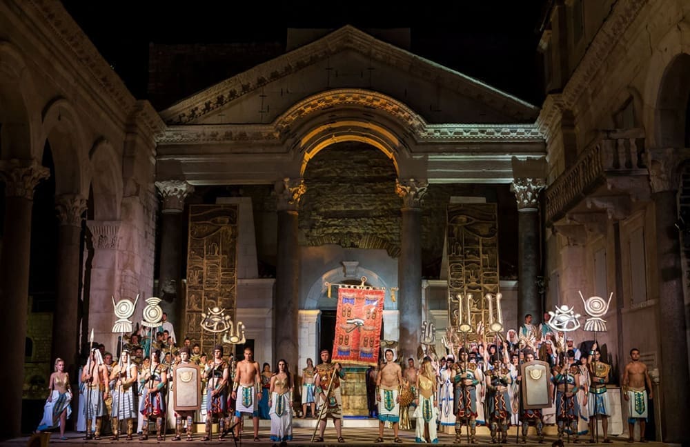 U, po mnogima, najraskošnijoj splitskoj Aidi dosad, premijerno postavljenoj prije četiri godine u režiji Dražena Siriščevića, i ove će godine uživati publika Splitskog ljeta. Na programu su dvije izvedbe: u utorak 24. srpnja i u četvrtak 26. srpnja s početkom u 21 sat na Peristilu. Po prvi put peristilskim će Aidama ravnati žena, proslavljena talijanska dirigentica Gianna Fratta, prva žena koja je ravnala Berlinskim simfonijskim orkestrom.