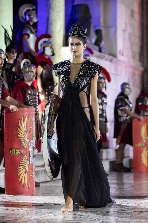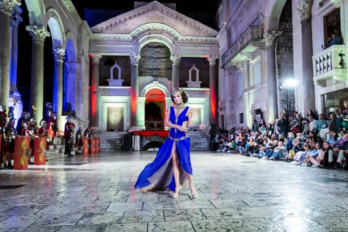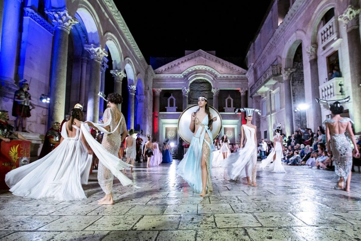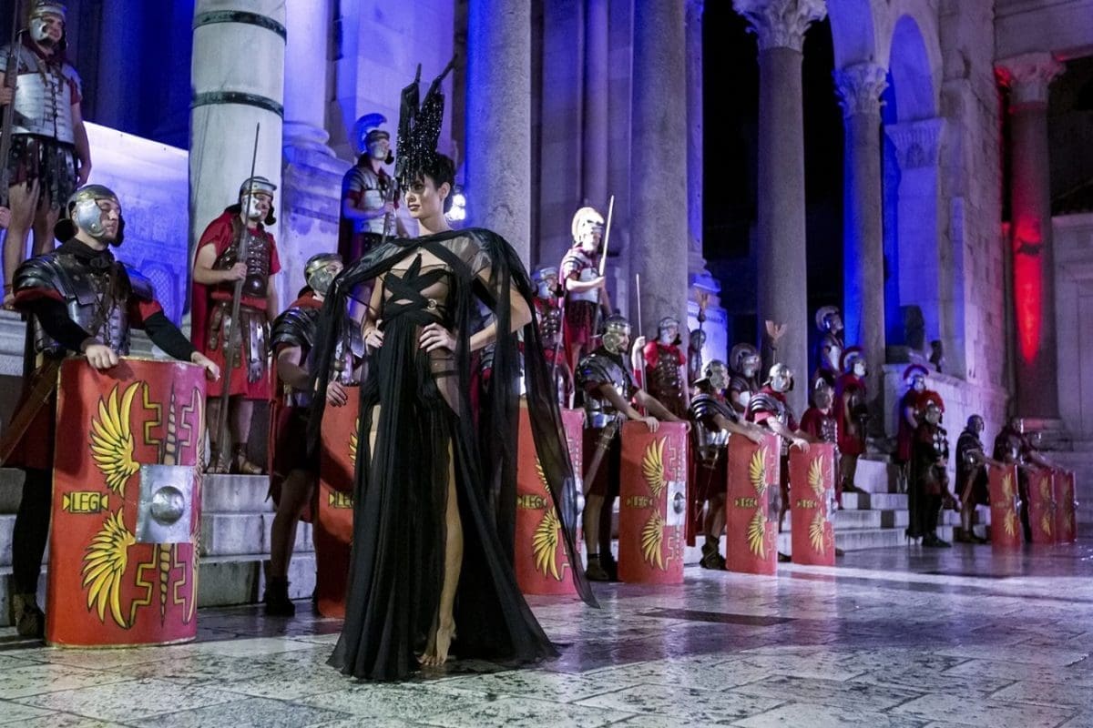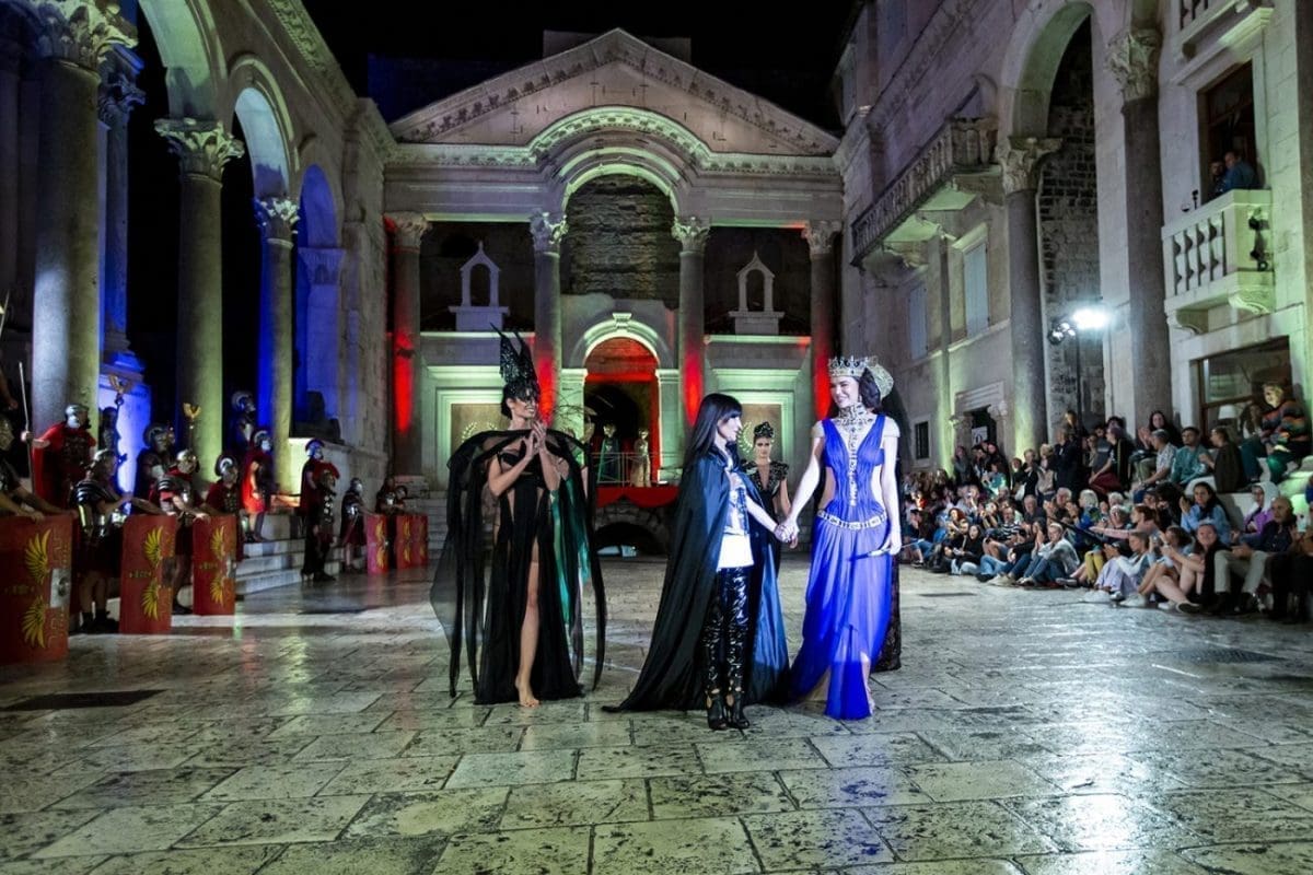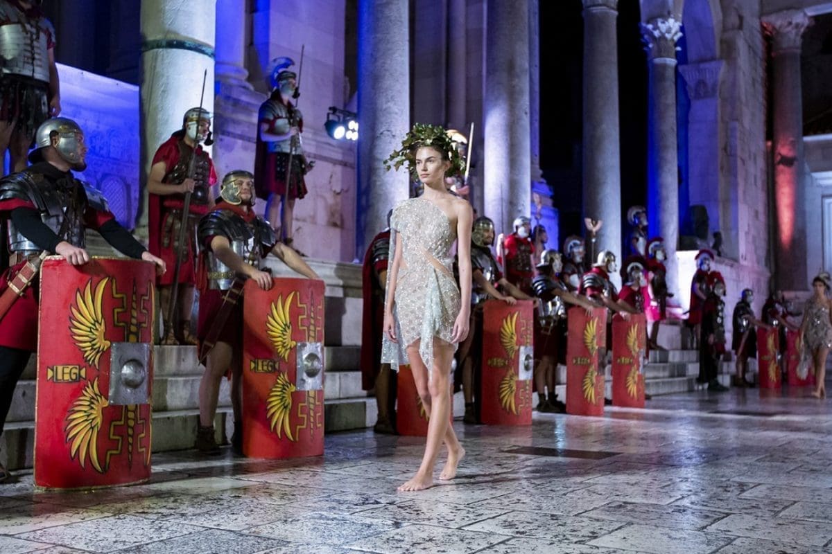 U samom centru Splita, na Peristilu održana je revija Dioklecijan i njegove žene, na kojoj su predstavljene nove kolekcije dizajnerice Matije Vuice.