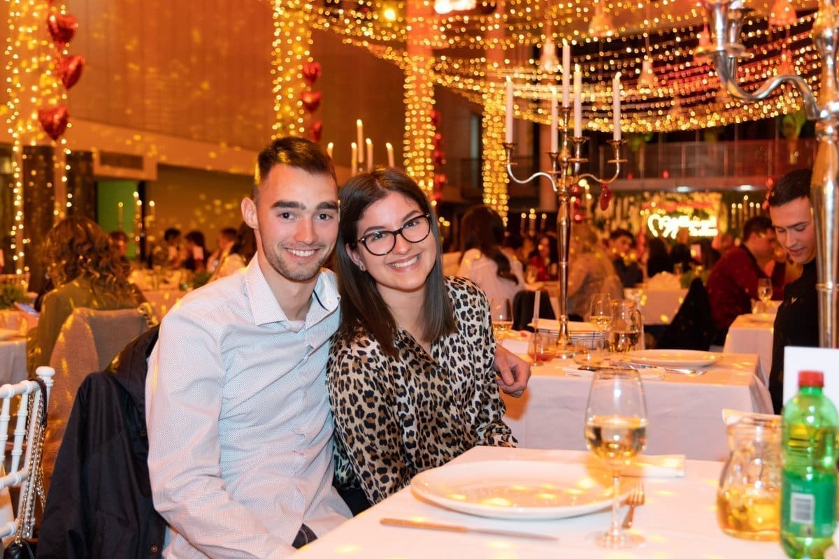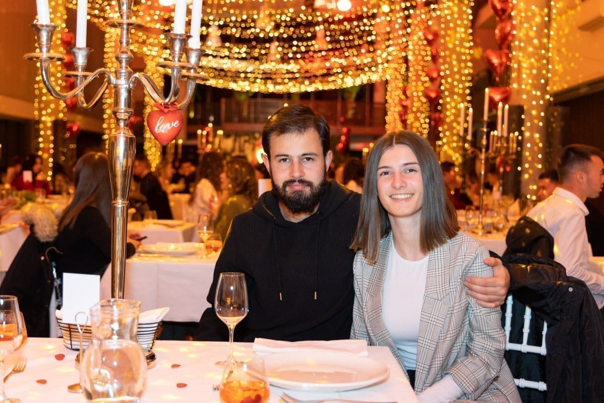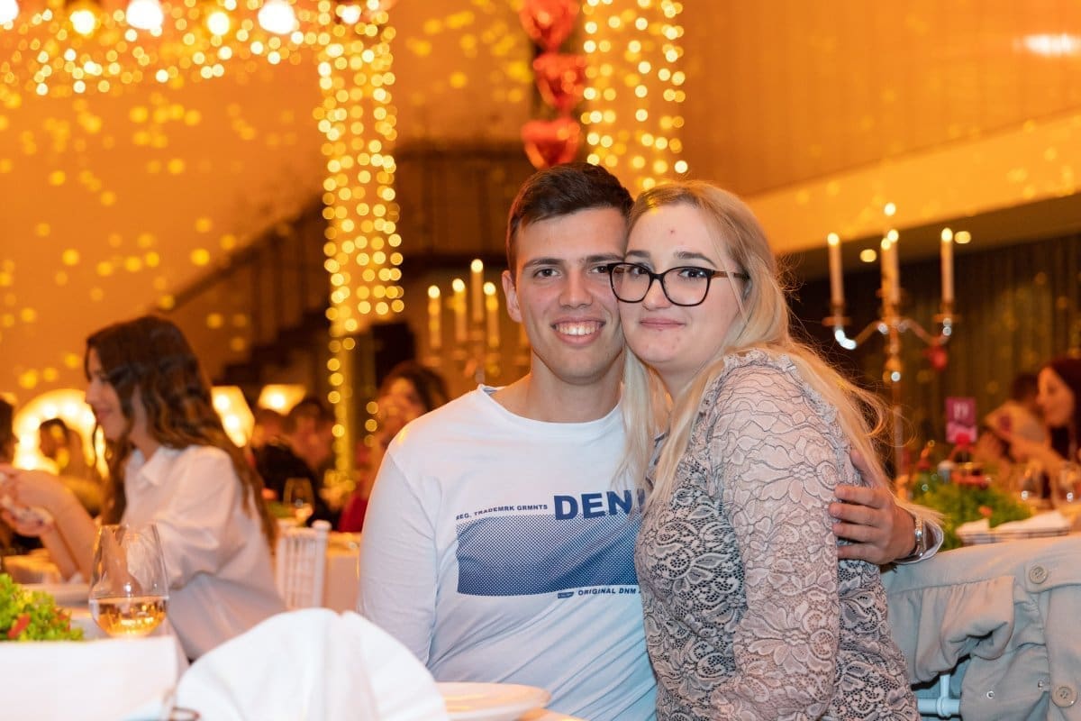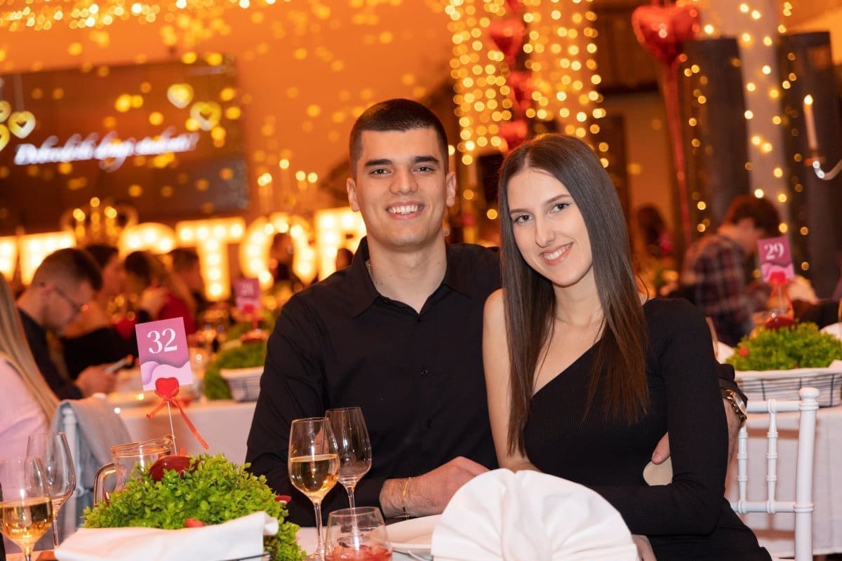 60 sretnih studentskih parova imalo je priliku sudjelovati na svečanoj valentinovskoj večeri u Restoranu Kampus. Koliko su ovakve večere postale popularne među studentima najbolje govori podatak da su sva mjesta rezervirana samo 15 minuta od početka prijava. Zvjezdano nebo satkano od 2.000 lampica, velika disko-kugla, baloni, svijećnjaci i fotokutak s ljuljačkom za zaljubljene učinili su da sve na prvi pogled izgleda glamurozno. - Već treću godinu dolazimo na večeru, ali ove je godine bolje nego prije. Svake se godine doda nešto novo u ponudu i baš je jako lijepo – govori nam Ivan Benotić s Fakulteta organizacije i informatike u Varaždinu, a s njime se slaže i pratnja Karla Bogoje s Filozofskog fakulteta u Splitu koja ga je i prijavila na večeru.