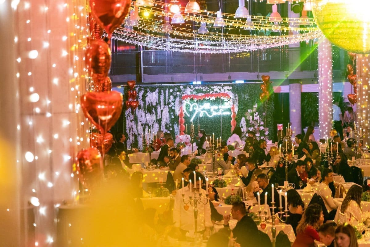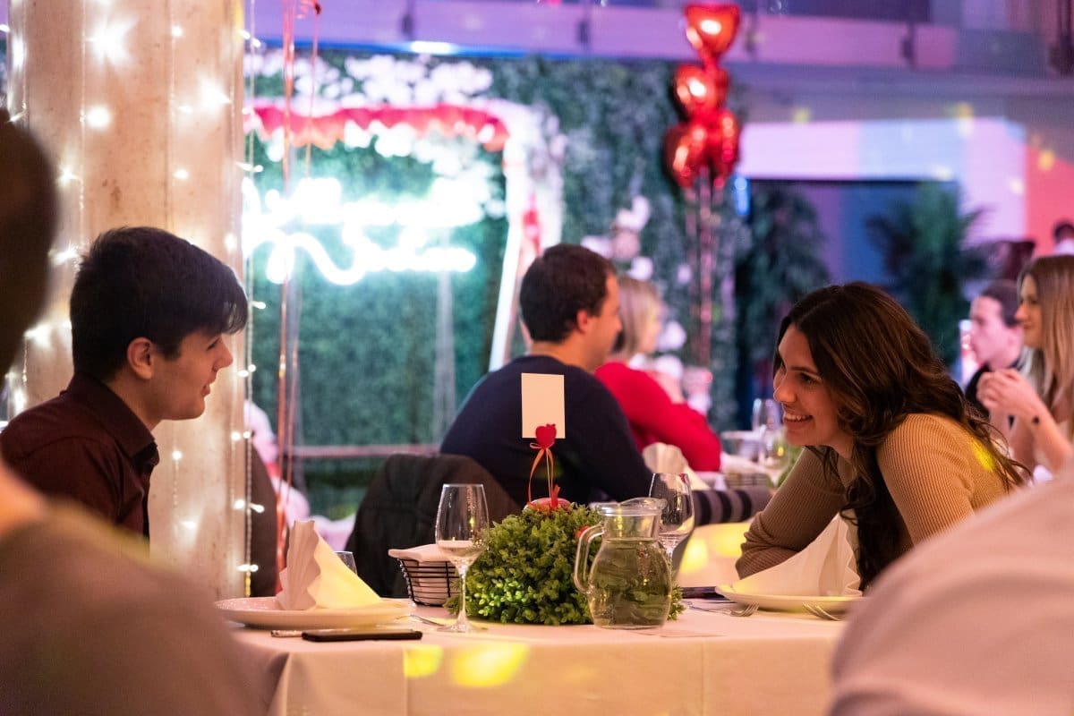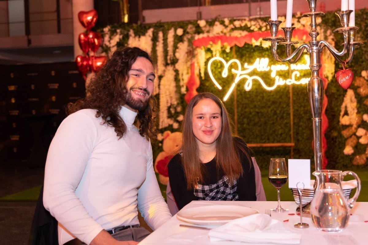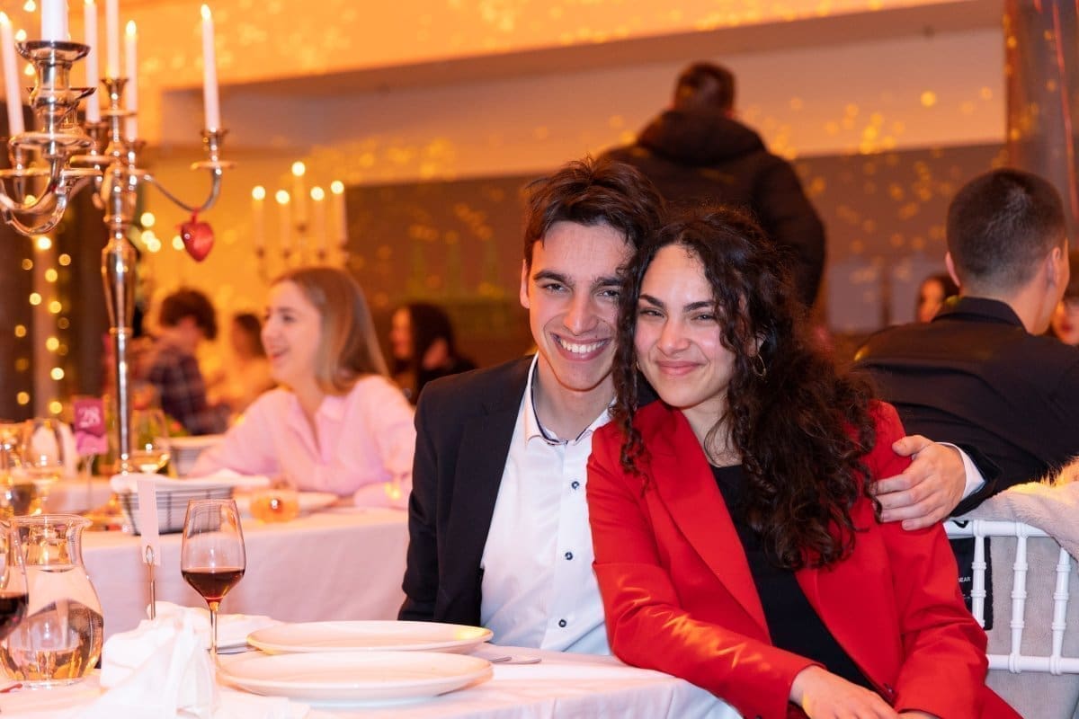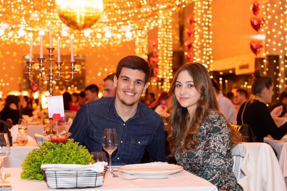 60 sretnih studentskih parova imalo je priliku sudjelovati na svečanoj valentinovskoj večeri u Restoranu Kampus. Koliko su ovakve večere postale popularne među studentima najbolje govori podatak da su sva mjesta rezervirana samo 15 minuta od početka prijava. Zvjezdano nebo satkano od 2.000 lampica, velika disko-kugla, baloni, svijećnjaci i fotokutak s ljuljačkom za zaljubljene učinili su da sve na prvi pogled izgleda glamurozno. - Već treću godinu dolazimo na večeru, ali ove je godine bolje nego prije. Svake se godine doda nešto novo u ponudu i baš je jako lijepo – govori nam Ivan Benotić s Fakulteta organizacije i informatike u Varaždinu, a s njime se slaže i pratnja Karla Bogoje s Filozofskog fakulteta u Splitu koja ga je i prijavila na večeru.