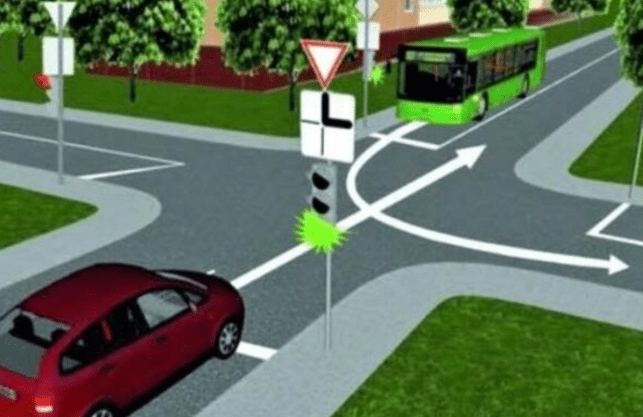 Automobil ide ravno, dok autobus skreće u lijevo.
