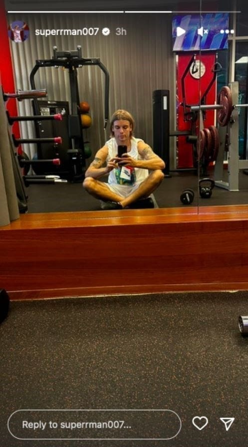 Borna Sosa na svom je Instagram profilu objavio slikuiz teretane. Sosa je na svom Instagram storyju objavio selfie ispred ogledala, okružen spravama za vježbanje i s podignutim rukavima majice koji otkrivaju njegove brojne tetovaže.