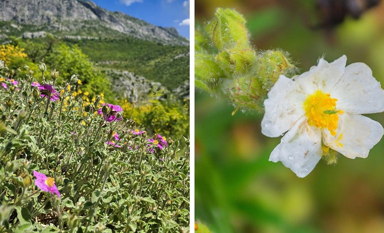 Kako ga prepoznati nije teško: grm je visok do metra, sivozelenih, nasuprotnih listova presvučenih poput sitnih dlačica; od travnja do lipnja otvara nježne cvjetove promjera pet centimetara, najčešće ružičaste boje sa žutom mrljom pri dnu latice ili potpuno bijele kod kaduljastog bušina. Ako između prstiju protrljate list, ostat će karakterističan gorkasto-smolast miris – sigurni znak da držite „pravu stvar“. Biljka voli vapnenasto tlo i potpuno sunce, a njezina sposobnost da preživi ekstremne suše čini je trajnim stanovnikom hercegovačkih brda i dalmatinskih škrapa.
