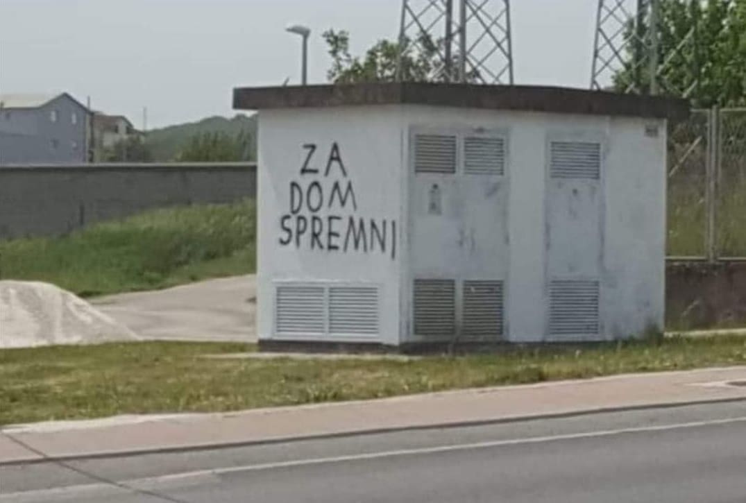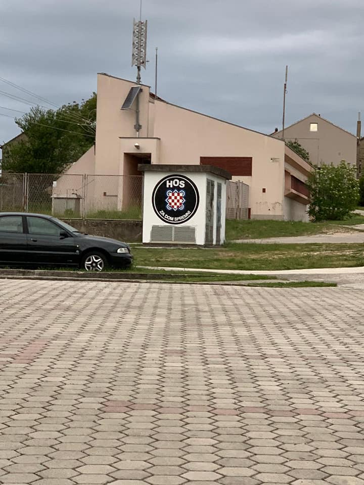 Jutros u centru grada Trilja pribojana sveta oznaka ratne postrojbe HOS-a oznaka je se nalazila na trafostanici u vlasništvu HEP- a).