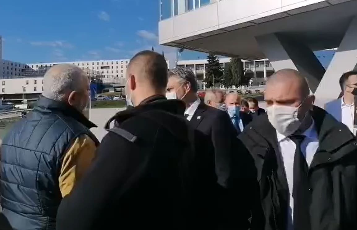 Zanimljiva scena odvila se pred Kampusom. Premijera je na mostu zaskočio predsjednik veteranske zadruge Domaćin Ivica Duje Ančić. Zaštitari su ga u početku pokušali udaljiti od premijera, no Plenković je dopustio da mu se Ančić obrati.