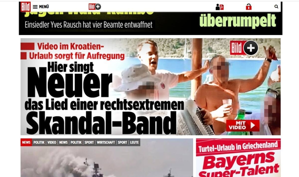 "Neuer pjeva pjesmu ektremnodesničarskog skandal - benda" - naslov je uz fotografiju ljetovanja iz Hrvatske, odnosno s dubrovačkog područje gdje je nogometaš boravio sinoć.