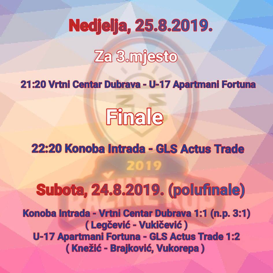 Ražine Kup približava se svojoj završnici. Jučer su odigrane dvije polufinalne utakmice, a danas se očekuje ono najzanimljivije - finale i utakmica za treće mjesto.