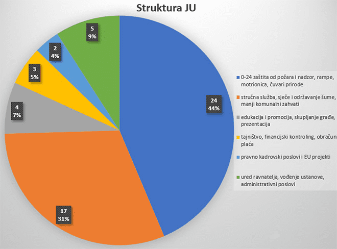Podsjećamo, trenutno u ukupnom broju od 55 uposlenih čak 24 djelatnika su radnici na rampama i motrenju šume sukladno Preventivno operativnom planu zaštite od požara i čuvari prirode, a 17 ih je u službi koja se pod nadzorom voditelja, licenciranog šumara, bavi sječama i održavanjem šume te malim komunalnim popravcima.