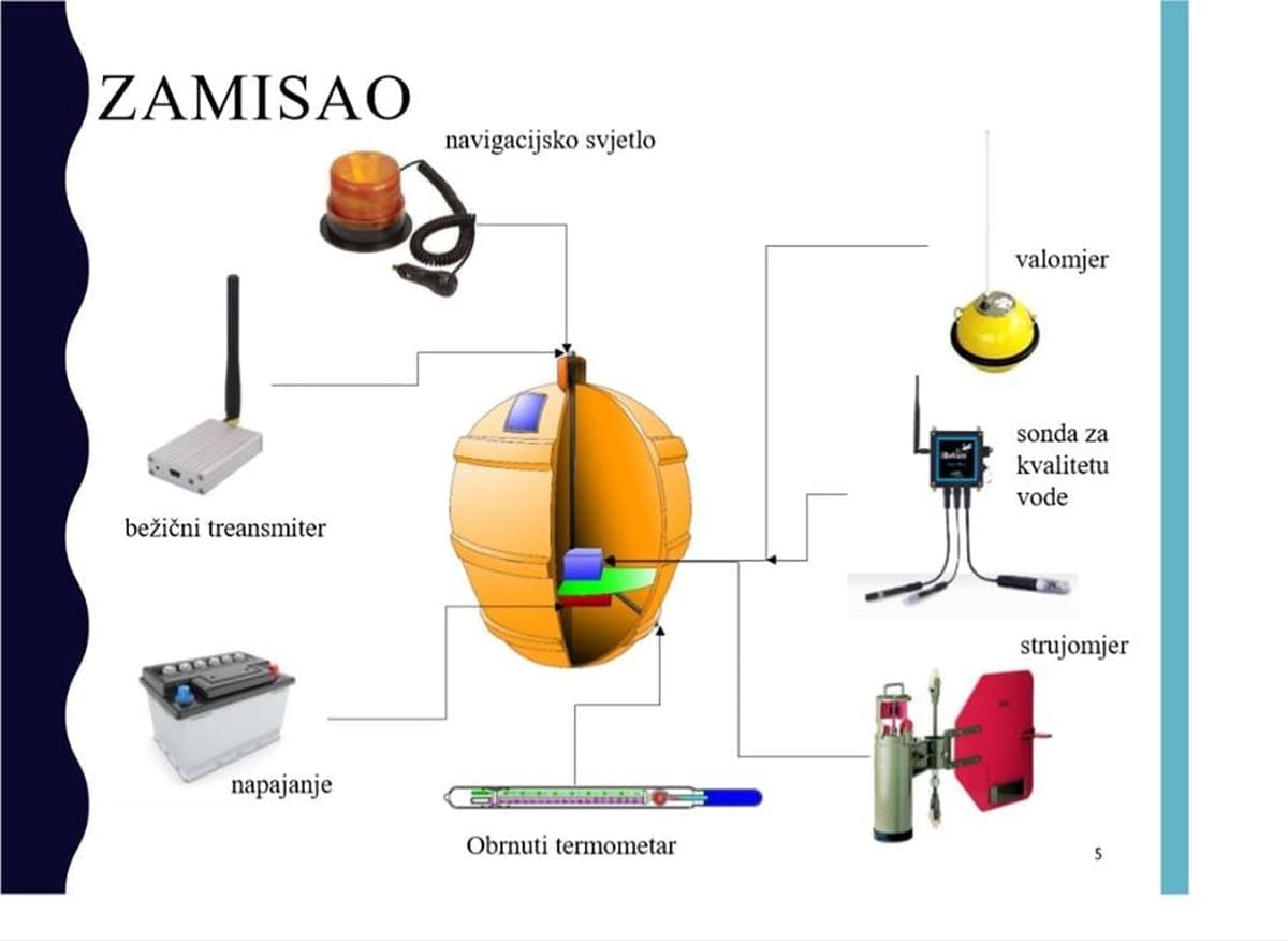 U opisu mog diplomskog rada stoji - citiram: ''Neprekidnim mjerenjem parametara mora postiže se uvid u gibanje vodene mase, a naknadnim dodavanjem određenih senzora omogućava se stvaranje podatkovne sigurnosne mreže, sustava upozorenja od nevremena, brojanje morskog prometa, analiza zagađenosti mora, predviđanje razmjera štete uzrokovane olujama te nadopunjavanje sustava za navigaciju i odabir optimalne rute kretanja. Cilj ovog rada je projektiranje i izrada prototipa takvog sustava čije su karakteristike energetska neovisnost, modularnost i jednostavnost upravljanja. Pametna plutača je bazirana na mikroprocesoru Arduino Uno R3, inercijalnom mjernom uređaju MPU3060 i na podatkovnom modulu ESP8266 što se pokazalo iznimno uspješnim.''