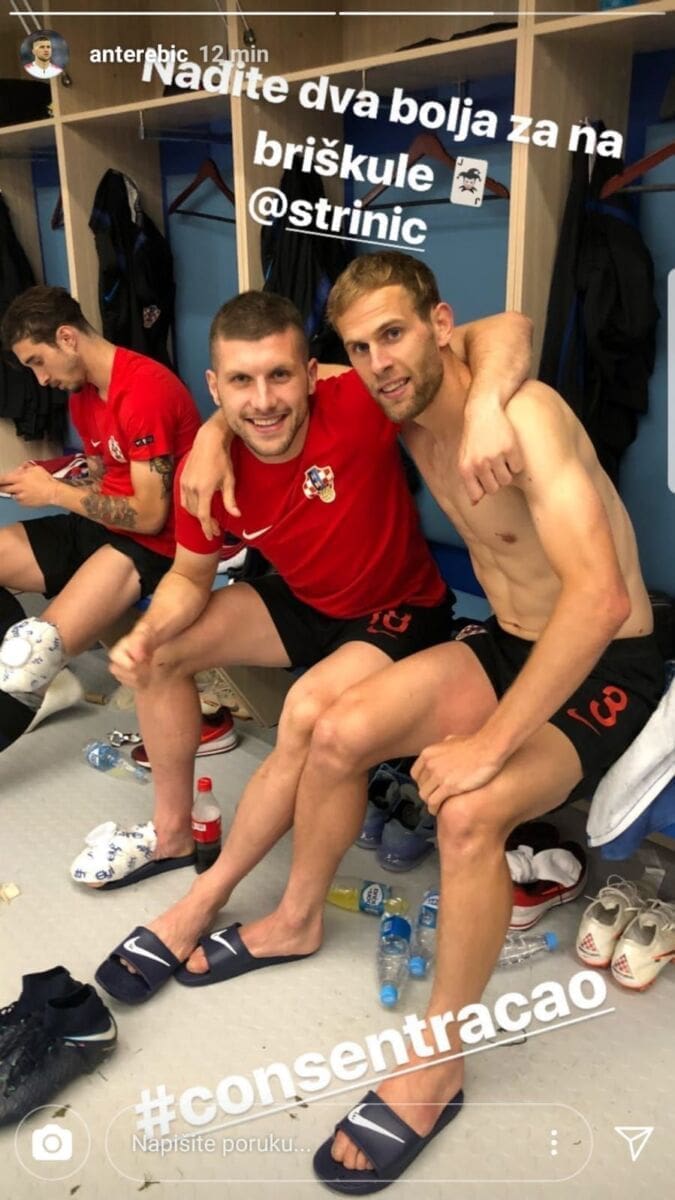 Nakon utakmice Rebić je na svom Instagramu objavio fotografiju sebe i Strinića uz poruku "Nađite dva bolja na briškule".