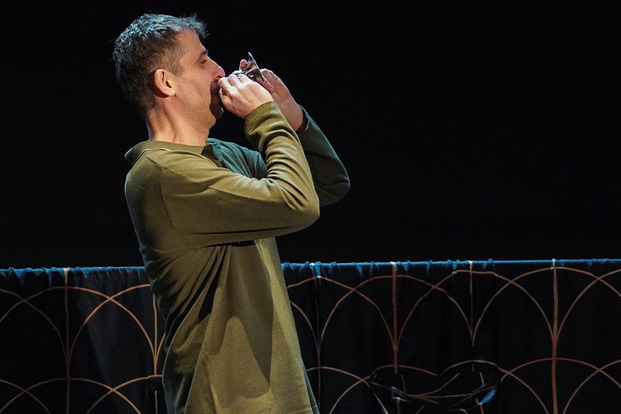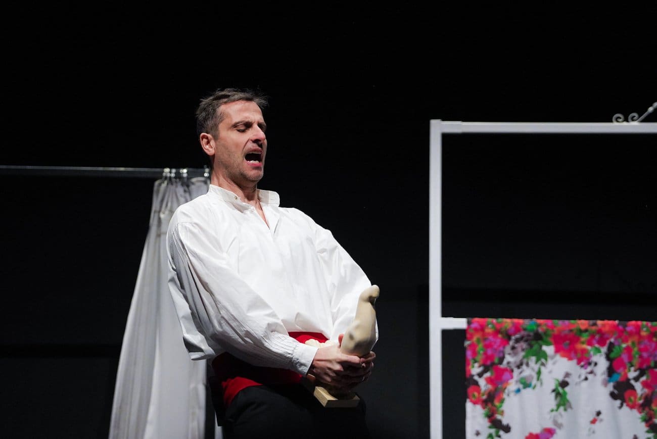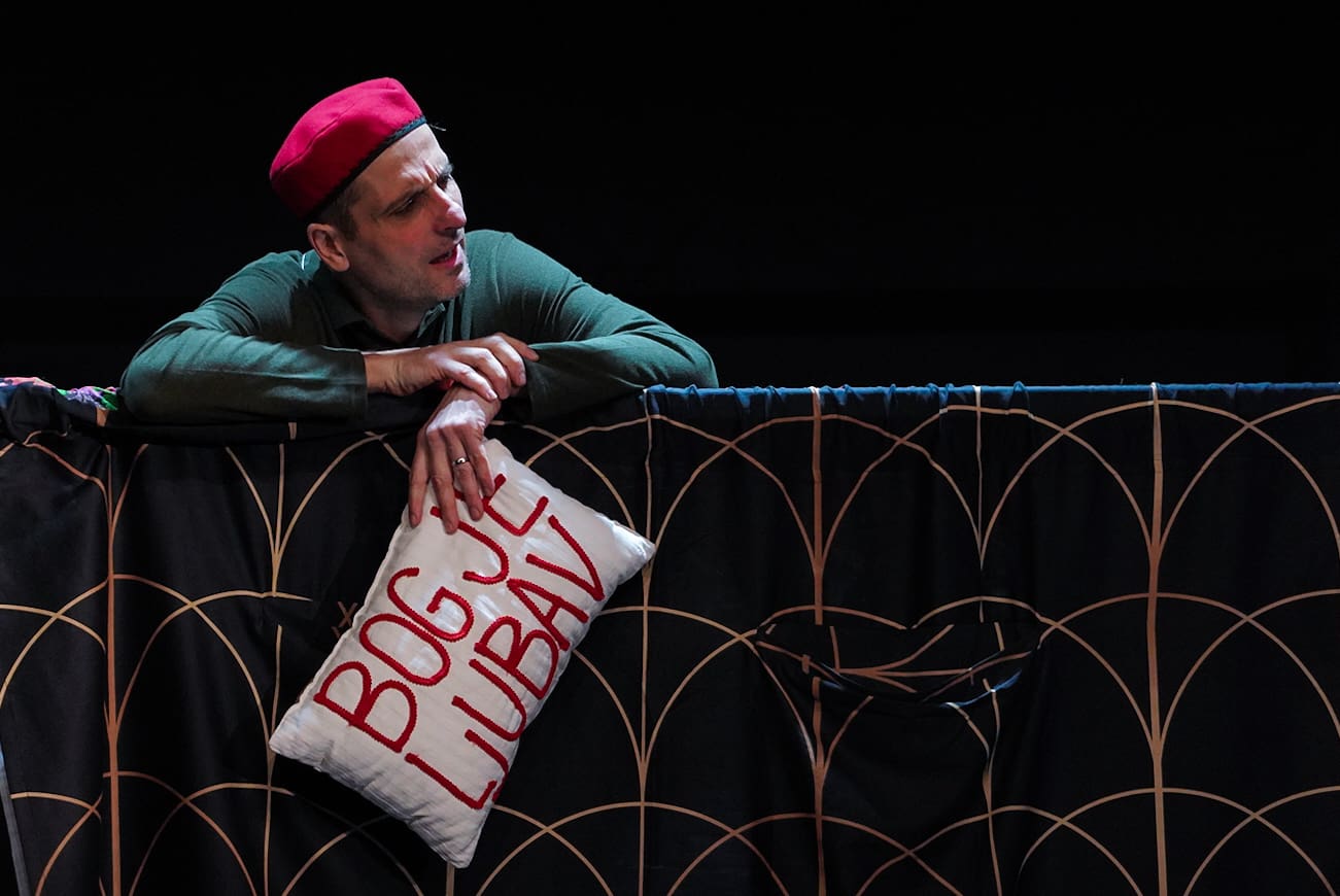 Na vrlo jednostavnoj sceni u kojoj dvostruki zastori služe kao police i ormari dominira publici mudro okrenut bračni krevet – predmet žudnje, ali i spoticanja mladog bračnog para koji u svoj novi dom dolazi u jednostavnim, stiliziranim kostimima nalik domaćoj svadbenoj nošnji (u kostimografskom rješenju Lucije Prstec Smolčec). Suprug maše falusoidnim kućnim kipićem i jedva čeka noć svojih snova, dok mlada supruga OKP-ovski pregledava njegove neoprane uši i tugaljivo cijedi da hoće majci. Međutim, i nelagoda i gunđanje brzo se otapaju jer Kurbaša sjajno prenosi sve ono što preplavljuje Hartogov lik – mladenački šarm, bezazlenost, naglost, iskrenost, neuvijenost. Njegov je Tonči čovjek kojega ne treba rastakati tražeći u njemu uspornike patrijarhalnih norma – on je naprosto odraz svoga prostora i vremena, simpatičan u svojoj nesavršenosti, slabašan i grešan, ali nedvojbeno zaljubljen.