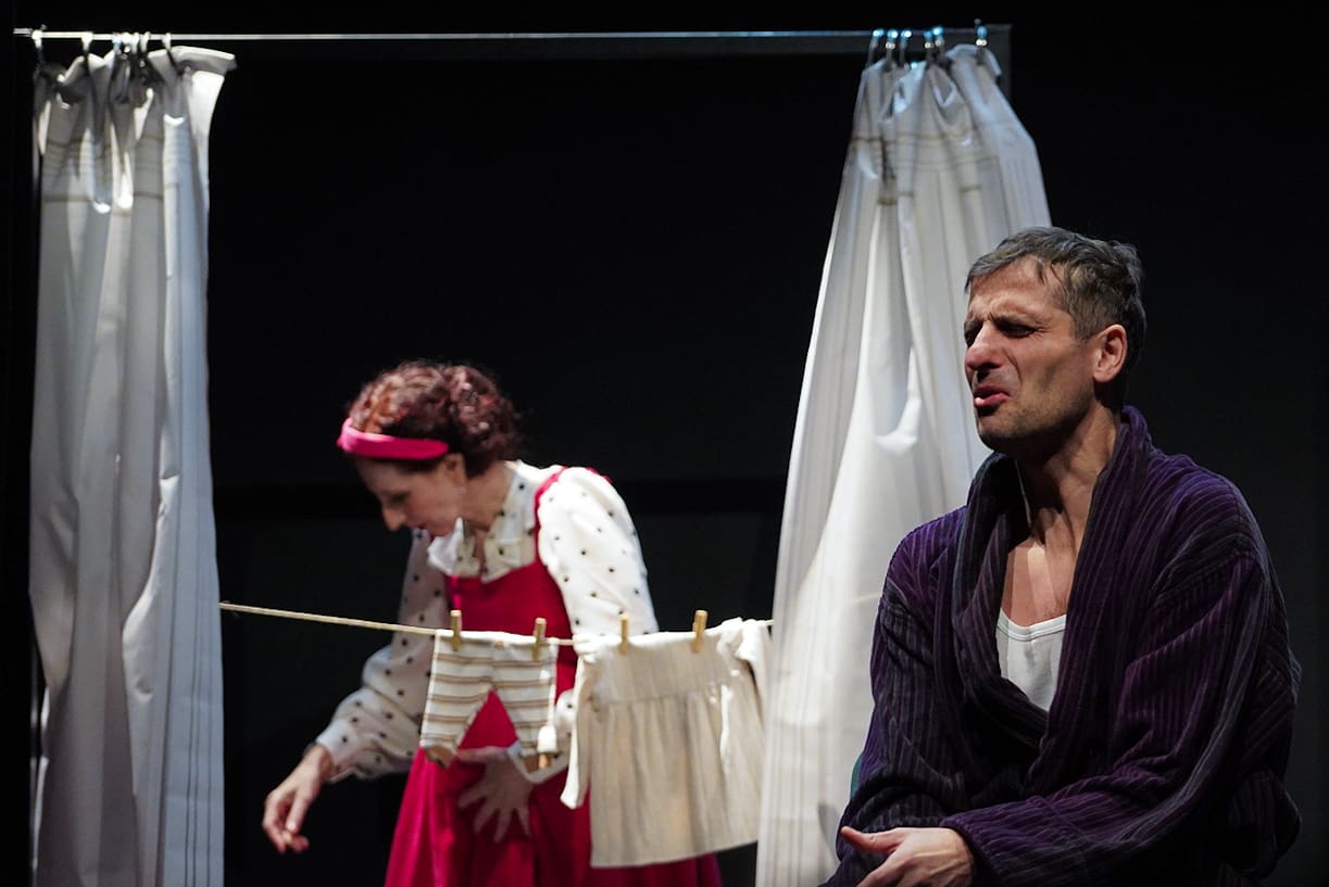 Uz zvuk dalmatinskih pjesama i prekopavanje po uspomenama na držačima za kapute gledatelji će se s protagonistima zasigurno zapitati – da svaki par u trenutku ovdje i sada mora spakirati svoje stvari i otići u neki drugi, novi svijet, što bi ostavio za sobom – i svojoj polovici, ali i onima koji dolaze iza njih. „Bračna postelja“ u sat i dvadeset minuta odlično je stisnula desetljeća i desetljeća bračnog odnosa u kojem „stalna samo mijena jest“, a Robert Kurbaša i Silvana Stanić ni u jednom trenutku nisu iskliznuli u karikaturalnost koju obiteljski problemi mogu donijeti. Njihova je izvedba u komičnim trenucima bila bliska, iskričava i zabavna, a u trenucima emocionalnih krahova iznimno duboka, osobna i dirljiva. Spomenuli smo ibsenovski moment instrospekcije u predstavi – iako „Bračna postelja“ plovi potpuno drugačijim morem od „Lutkine kuće“, jedno im je zajedničko – pitanje odlaska ili ostanka u odnosu koji je bračnom paru utisnut u svijest kao najvažniji na svijetu. Jedno moramo priznati – ovaj nam je solinski rasplet mnogo draži i topliji.