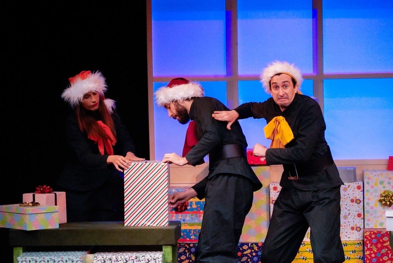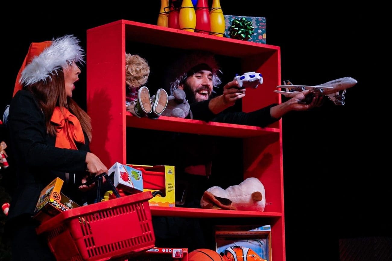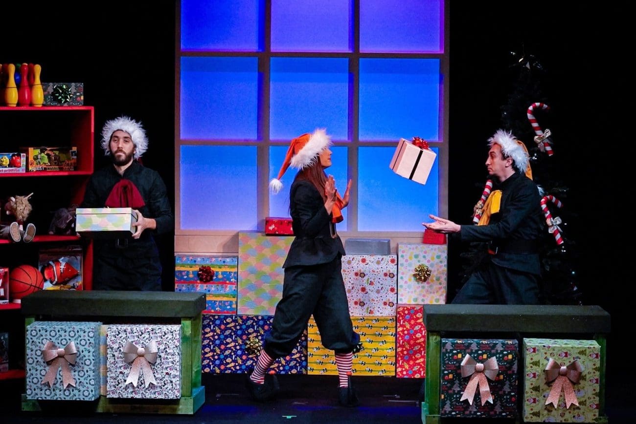 Trojac Djedovih pomoćnika-vilenjaka, koji s mnogo humora, ekspresivnosti i briljantnih mimičkih rješenja (uz izvrsnu kostimografiju) utjelovljuju Franjo Đaković, Stipe Gugić i Justina Vojaković Fingler, ima pune ruke posla u pakiranju poklona i njihovoj distribuciji. Tijekom pregleda bezbrojnih kutija nailaze i na prašnjavu crnu knjigu koja krije strašan popis – one djece koja nisu sa zahvalnošću prihvatila igračke pa ih više neće ni dobivati, te onih igračaka koje su odbačene. Prvu skupinu predstavlja dječak Zdenko Razmaženko u živopisnoj animaciji Stipe Gugića, a jedan od najslađih lutkarskih likova koje smo vidjeli Medvjedić je u spretnim rukama Justine Vojaković Fingler. Zdenko je dijete kojemu ne nedostaje ni ptičjega mlijeka, ali i tipičan predstavnik one tužne skupine djece čiji roditelji, jureći za poslovima i svim ostalim ovisničkim jadima suvremenoga svijeta, više nemaju vremena za zagrljaje i nježnosti, ali djetetovu naklonost nakratko stječu poklonima. Jasna kritika „modernom“ odgoju.