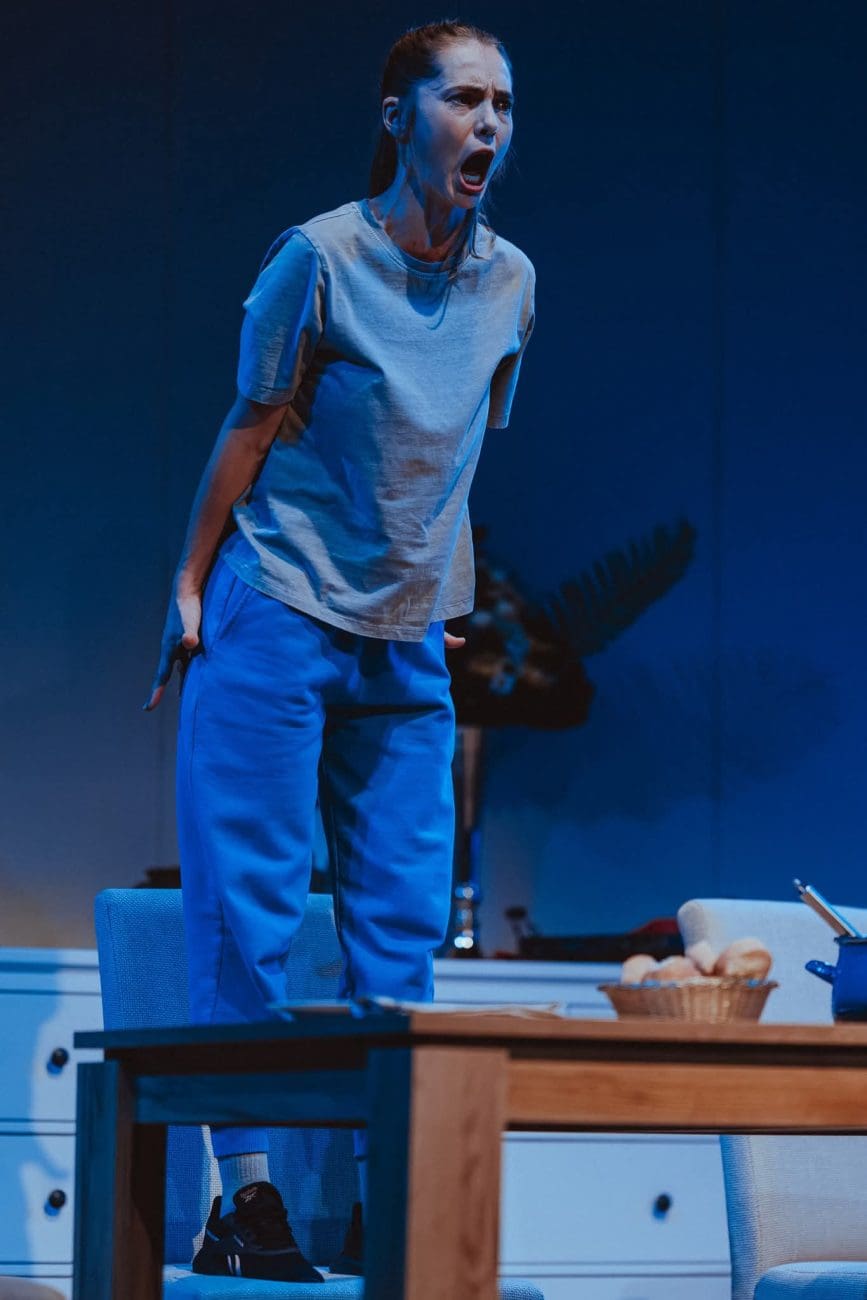 Nakon „Kandahara“ bi vjerojatno bilo bolje šutjeti, da se ovako ispodprosječan projekt što prije zaboravi. Tema, doduše, nije slutila na takav raspad – Mater (Marija Šegvić), djeca Luce (Nika Petrović), sin Toni (Luka Čerjan) i Baba (Andrijana Vicković) željno iščekuju svako javljanje Oca (glas Mije Jurišića) koji je na humanitarnoj misiji u Afganistanu. Time autorica teksta i dramaturginja fokus rata smješta u obitelj koja godotovski čeka, a ne na bojište, želeći dokazati da ratna trauma ne pogađa samo onaj prostor gdje padaju bombe, nego i unutarnje svjetove bližnjih koji svaki dan do potencijalnog povratka provode u strepnji i svojevrsnoj nedovršenosti. Njihovi životi stagniraju, svakodnevni se problemi gomilaju, a ukućani načeti svojim demonima ne mogu biti stalno leteće utočište svojim najmilijima. Oni odrastaju, ljute se, bave se humanitarnim poslom, istrčavaju norme, dobivaju i gube na težini, kažnjavaju se pod krinkom samokontrole, raspadaju se onda kad bi trebali kupiti komadiće drugih… Tekst nije loš – bio bi još bolji kad bi se slušao zatvorenih očiju. Jer njegova je redateljsko-glumačka koncepcija više izgledala kao studentsko scensko čitanje nego kao ozbiljna predstava na daskama nacionalne kazališne kuće.
