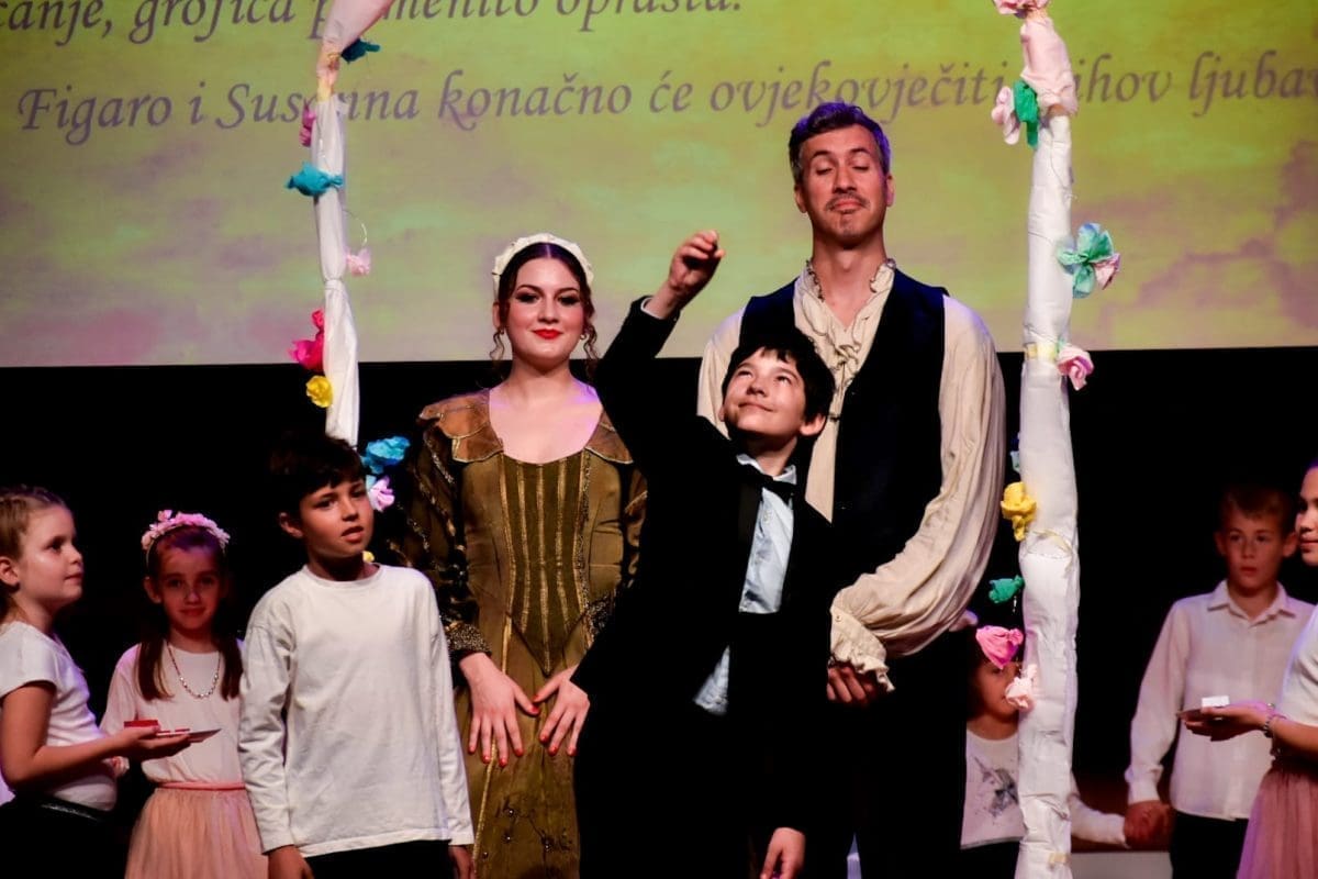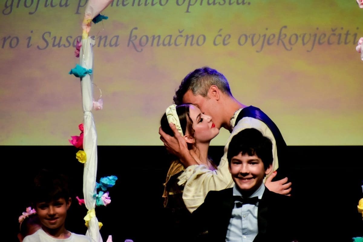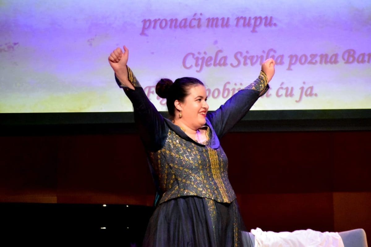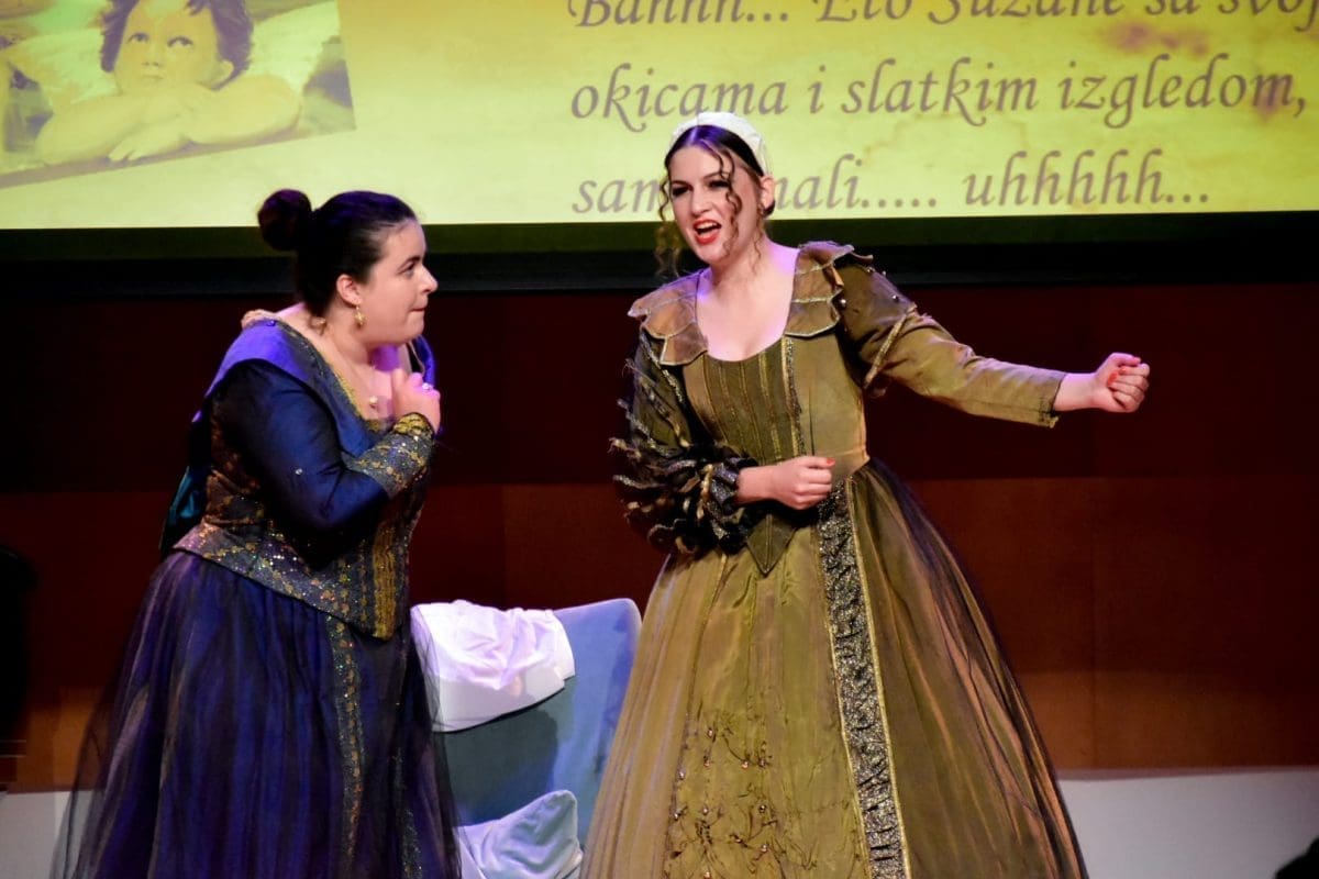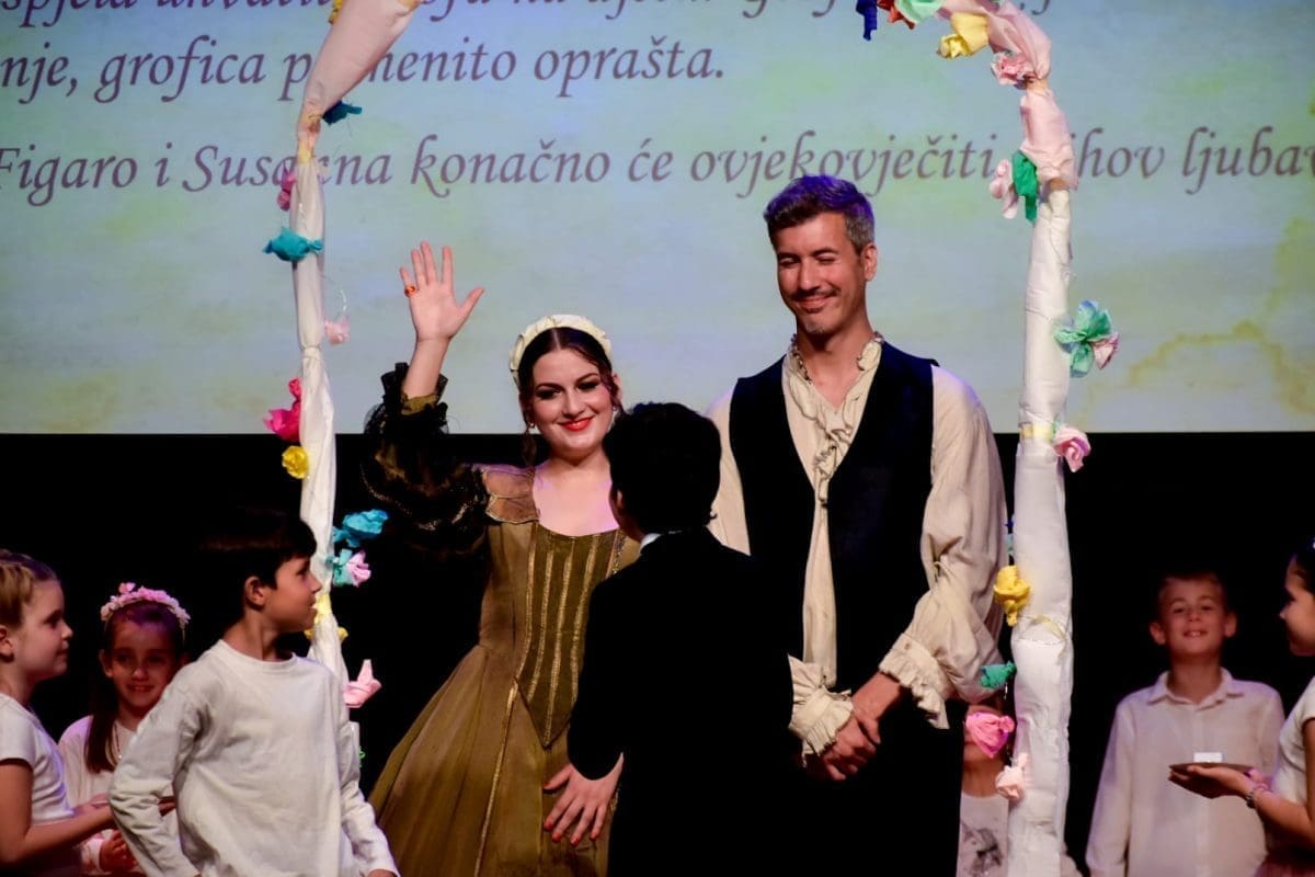 Glas koji je potpuno ispunio i očarao dvoranu bio je onaj Ane Conjar u ulozi Grofice, žene koja svim silama želi spriječiti „šaranja“ svoga supruga, ali i pod svaku cijenu navesti da je voli. Kristalno čist, topao sopran koji navodi da zatvorite oči i odlutate u ariju s njom jedno je od najljepših otkrića ove izvedbe. Za kraj smo ostavili još jedan očaravajući nastup u izvedbi najmlađe pjevačice, Klare Čipčić, maturantice solo pjevanja pri splitskoj Glazbenoj škole Josipa Hatzea u klasi prof. Sanje Erceg Vrekalo. Mlade Čipčić bila je puna pozornica – njezina je prezentnost i glumačka nadarenost oduševljavajuća, a parirati joj može samo predivan, snažan i izrazito zreo vokal, ravnopravan s izvrsnim iskusnijim kolegama, s kojim je teško povezati njezine godine.