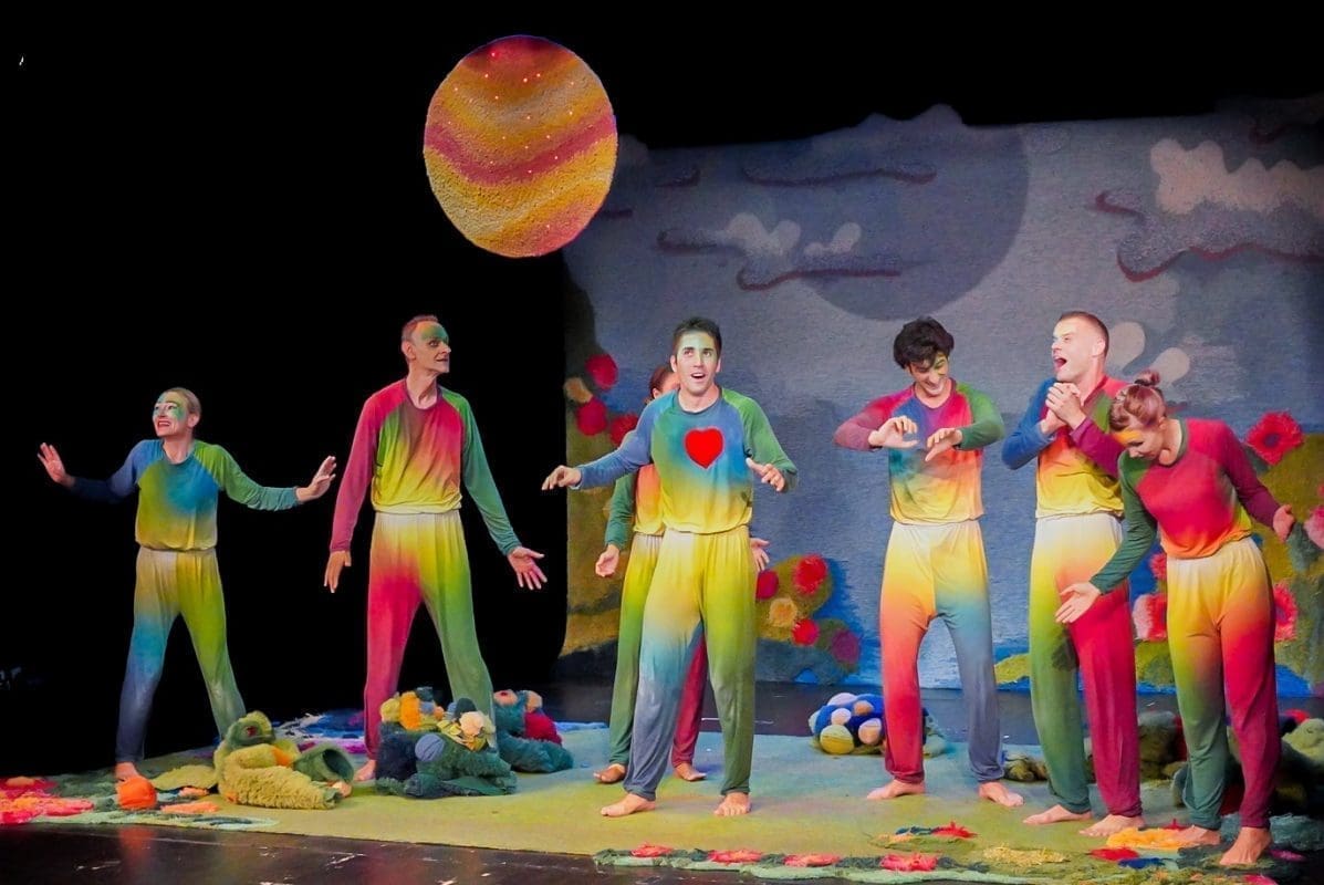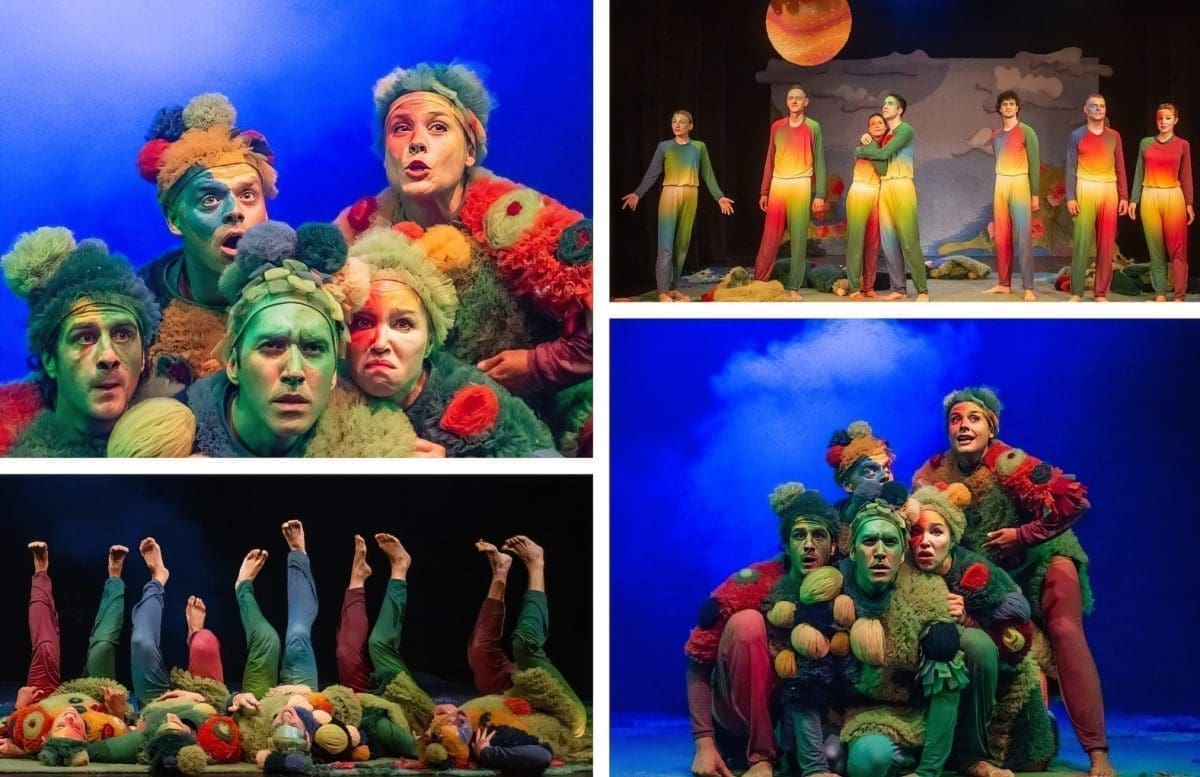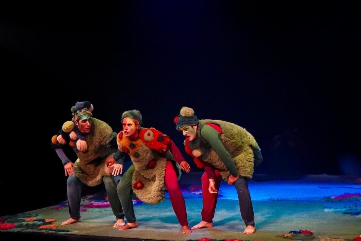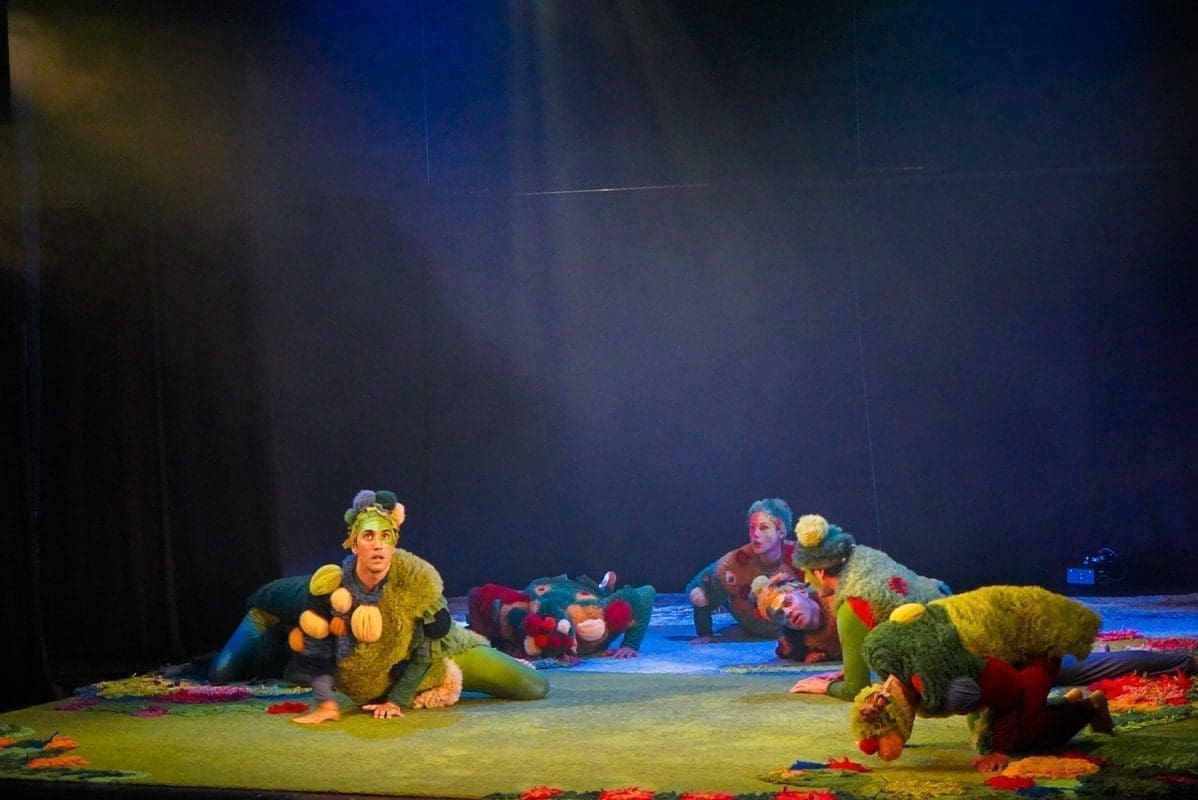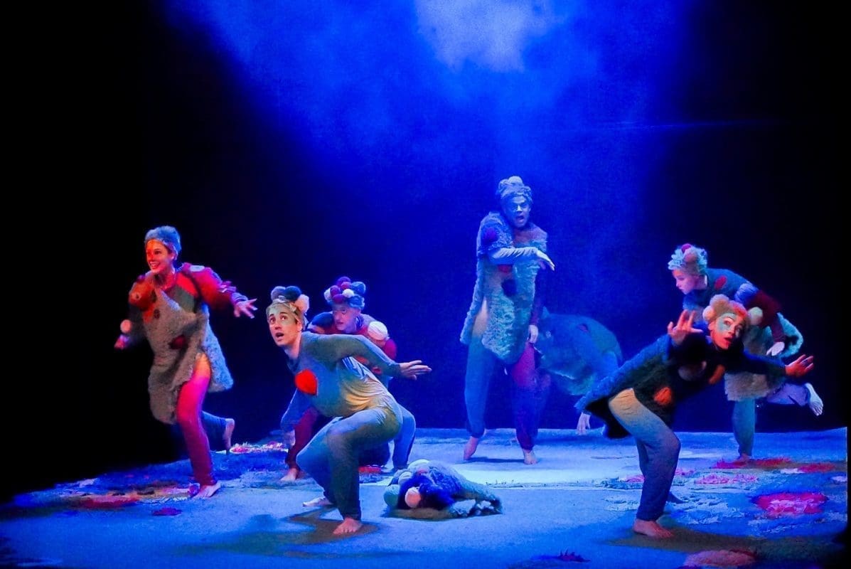 Šumovi močvare, poluartikulirano siktanje, gibanje na granici između životinje i čovjeka, lelujajuća tijela koja su više tjelesa, dramatično prigušeno svjetlo, dovoljno tek da osvijestimo tamu, prelijepi, kompleksni kostimi Sonje Obradović koji isprva djeluju kao oklop od mahovine i saprotrofa u koji su obrasla ta svojom krivnjom ukalupljena tijela – sve je to vidljivo već u prvim sekundama izvedbe „Dankova srca“. Predstava je to koja od početka hrabro korača u rizik – rizik pripovijedanja pokretom. Teško se sjetiti predstave koja je toliko pozornosti dala mogućnostima ljudskog (ili humanoidnog?) tijela. Pleme koje uspavljuje Danka žustrinom svoga njihanja sugerira emocionalno stanje, njihovo spavanje (i zbiljsko i metaforičko) koje se odvija u potpunoj sjeni situacija iz prvog plana savršeno je zibanje pasivnih promatrača koji se boje postati aktivni sudionici. Simpatični vizualni gegovi, posebno kod Stipe Jelaske i Stipe Gugića, izazivaju niz komičnih reakcija kod publike, a osobito važni dijelovi radnje poput prijelaza iz svijeta tame u svijet svjetla, pravi organski leap of faith, karakterno ocrtavaju likove – od akrobatskih skokova onih prijatelja s djetinjim povjerenjem do nešto suzdržanijeg prijelaza Vrača, plemenskog mudraca. Kad se sve zbroji – scenski je pokret u ovoj predstavi najbliže savršenom što smo gledali.