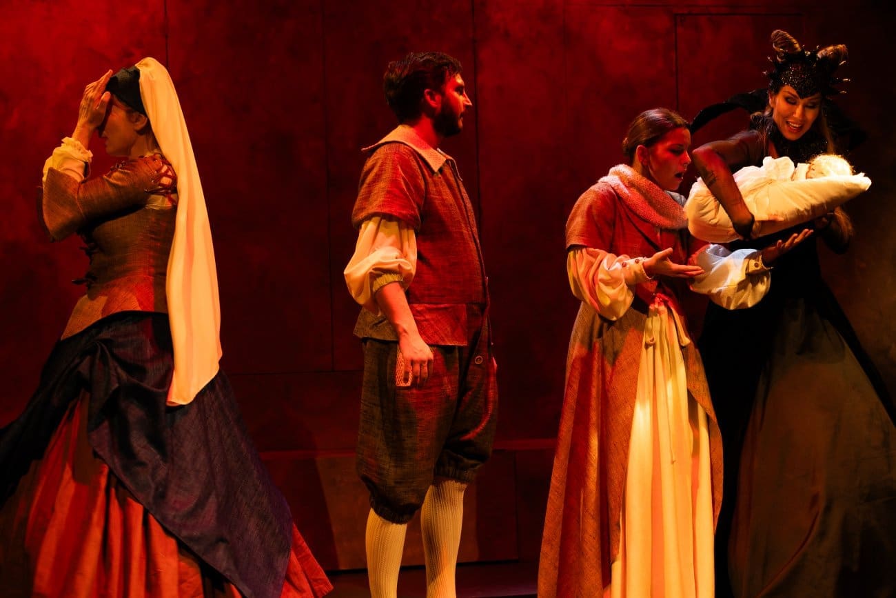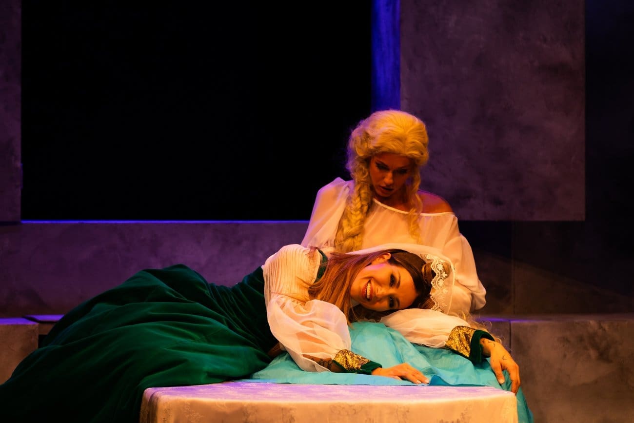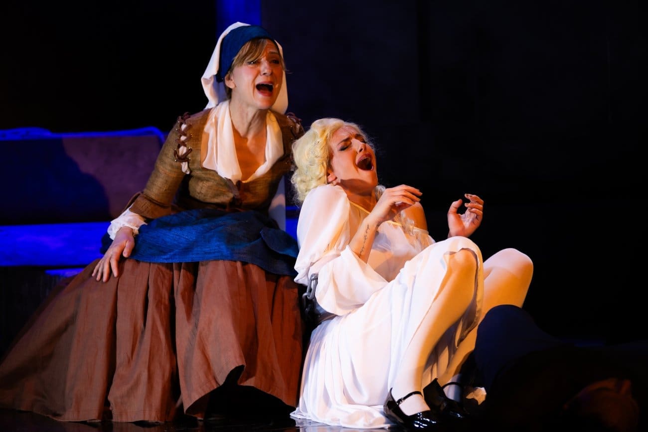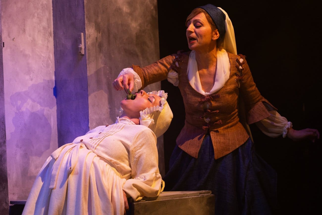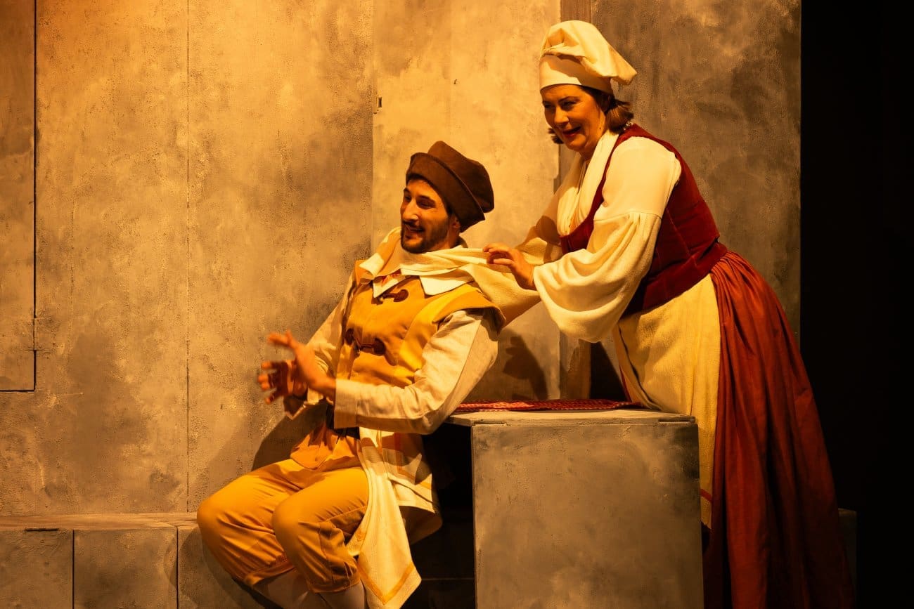 Kad se na trenutak učinilo da bi ritam predstave mogao pasti, dogodio se odličan obrat u vidu izmišljenih likova Krčmarice (Lidija Florijan) i Krčmara (Denis Tomić). Oni bi se po Propovoj „Morfologiji bajke“ vjerojatno svrstali u pomoćnike, ali njihova je pomoć sva rastresena, smotana, pomalo bizarna i nadasve smiješna, a scenski pokret, s jednostavnim plesnim korakom i jurcanjem za likovima čije odnose pokušavaju staviti u ravnotežu, upravo sjajan. Osim toga, Florijan i Tomić drugačije grade komiku svojih likova – njezin intelektaualističko-ignorantski poker face, toliko neprimjeren situaciji – baš paradoksalno – gradi komediju situacije, a Tomić se poigrava sa submisivnošću niže rangiranih i uslužnošću dobroćudnih. Lijepo je vidjeti da se dva toliko slična lika oblikuju radikalno drugačijim pristupima – a oba su uspješna.