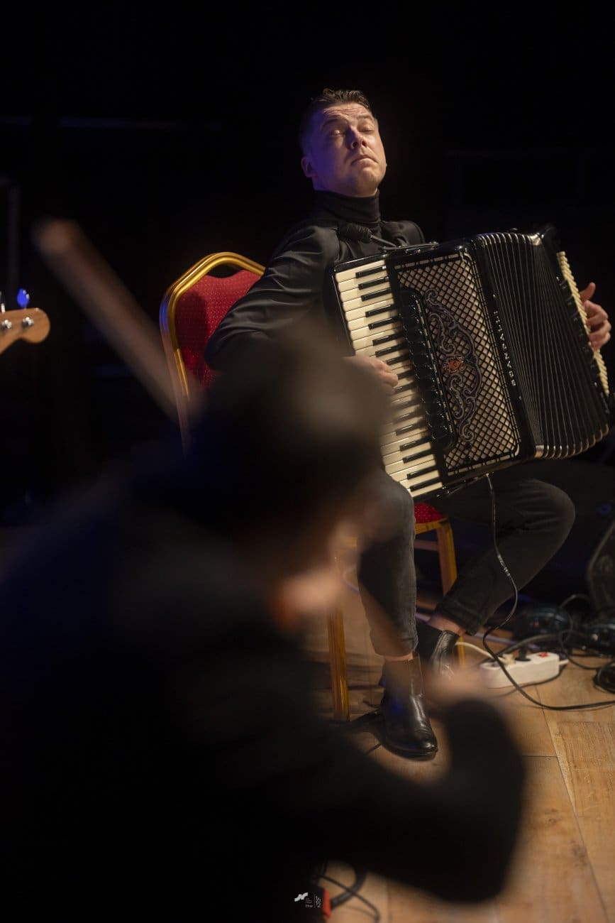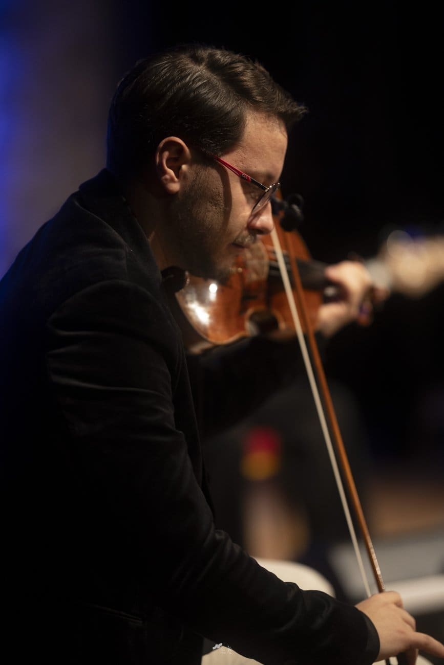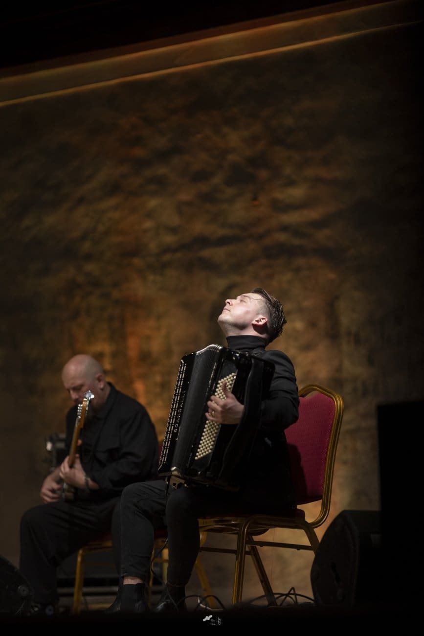 Iako se Amira Medunjanin može s punim pravom svrstati među pjevačke dive, njezin nastup nije „one woman show“, u njemu nema samodopadnosti, izvođači su tu u službi glazbe. Njezini prateći instrumentalisti, Antonio Vrbički na harmonici, Mario Rašić na bas gitari i Leopold Stašić na violini bili su besprijekorni. Rašićeva bas gitara vezivno je tkivo koje u većini skladbi daje onu pozadinsku boju koja bi laičkom uhu možda i promaknula. Međutim, njegova je suptilnost samo potvrda vještine i fantastična vladanja materijom te prilagodbe specifičnom načinu pjevanja. Leopold Stašić iz svoje violine izvlači sve one majstorije koje je čine toliko omiljenim instrumentom, pogotovo u narodnom melosu, a pizzicato u „Žutim dunjama“ i veličanstvena melodijska linija „U Stambolu na Bosporu“ vrijedne su antologija. Nepristojno ćemo izdvojiti i osobnog favorita, Antonija Vrbičkog na harmonici. Mladi je virtuoz svom instrumentu dodao toliko različitosti karaktera, boje, maestralnih legata, trilera i ukrasa da vjerojatno nije neka hrabrost reći da bi Vrbički i kao solist zvjezdano zasjao pred svakom publikom.