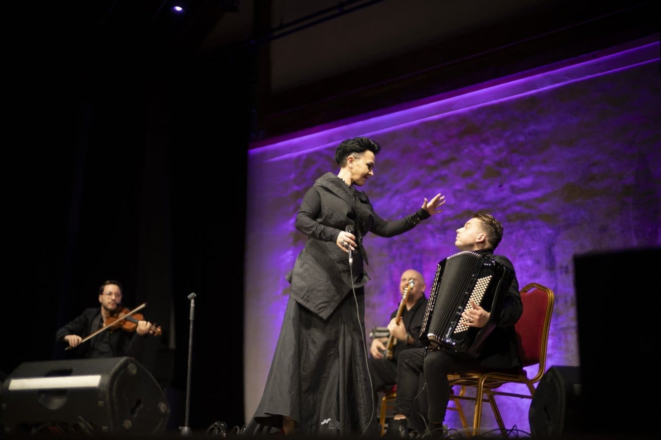 Na repertoaru Amire Medunjanin našle su se i tradicijske i autorske kompozicije, a spektakularno je otvaranje obilježeno prelijepom skladbom „Kad bih bila“ s novog albuma „Homeland“. Riječi koje razbijaju okove granica, duša koja je baš ujevićevski „za let stvorena“, znatiželja čista srca – sve je to bila ulazna pjesma koja se zatvara proročkim „možda tamo ljubav je“. Najveću životnu antitezu, onoga tko je čas gore, a čas dolje, emotivno je interpretirala u „Pjesmom gradim mostove“, briljantnoj lirskoj minijaturi o onoj koja „do zvijezda putuje“, a na tom je putu i stotinu puta pala, ali i odozdo vidjela sve. Ta je pjesma samo jedna od desetaka u kojoj valja pohvaliti violinista Leopolda Stašića čije je gudalo rasplakalo i žice i publiku, a glas Amire Medunjanin kao da je krvario emocije.