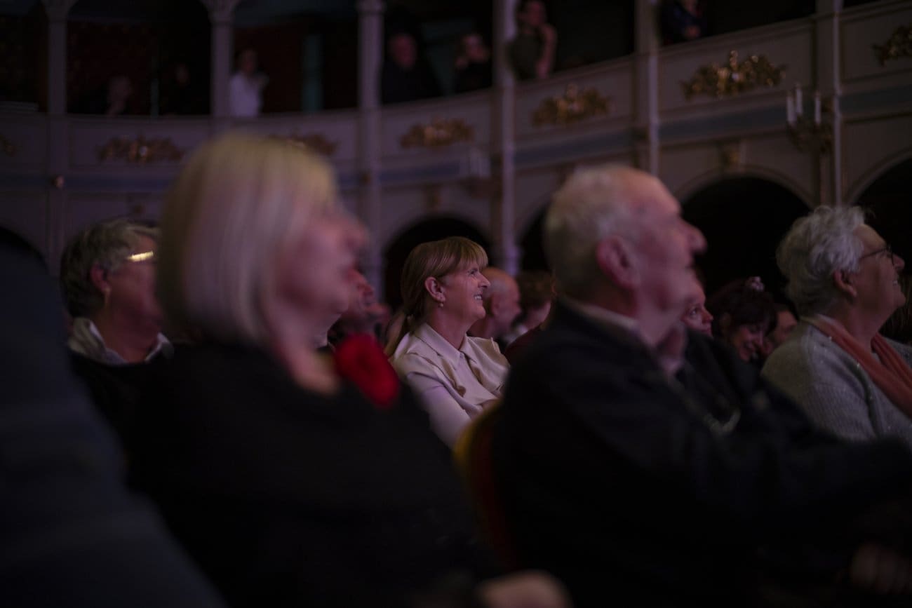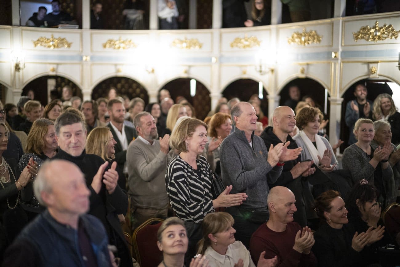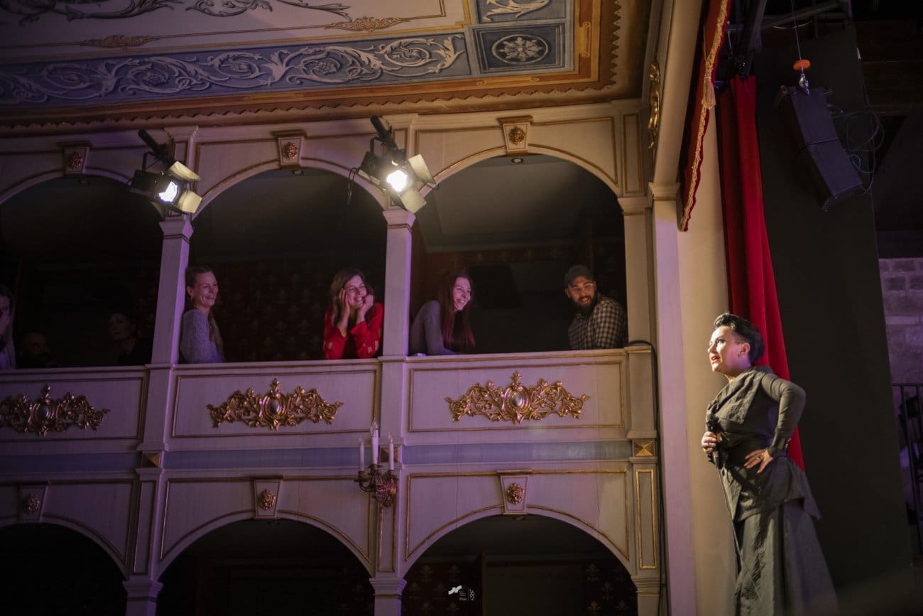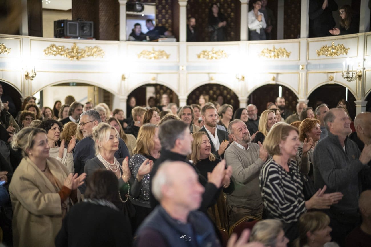 Hvarsko kazalište bilo je najljepša moguća kulisa za koncert koji se rubno može nazvati intimnim – i parter i lože bili su ispunjeni do posljednjeg mjesta, a publika željna svoje miljenice zakrčila je ulaz u kazalište 40-ak minuta prije početka koncerta. Ne bi to bilo ništa neobično da se koncert ne odvija na otoku, usred zime, na dan kad katamarani nisu mogli isploviti, što je još jedan dokaz hrabrosti, upornosti i pametne umjetničke vizije ravnateljice Jelene Mićić. Medunjanin se u duhovitom monologu prisjetila svoje posljednje hvarske avanture, kad je 2019. bila prisiljena prekinuti koncert zbog ogromnog ljetnog pljuska i spašavanja tehnike. Drugi je pokušaj bio više nego uspješan – dva su sata proletjela u trenu, uz obostranu radost, prelijep ugođaj i emotivni roller coaster.