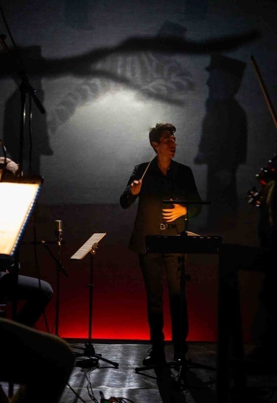 Zašto je tomu tako? Osim što „The Stranger Within“ počiva na izuzetno izazovnim ritmičko-melodijskim skokovima, on ujedno koketira s radikalno različitim raspoloženjima te propituje mogućnosti instrumenata, pretvarajući očekivani zvuk u nešto potpuno novo – harmonika na trenutke djeluje kao udaraljka, gudački instrumenti kao cvilež ili zviždanje u daljini, udaraljke kao koraci ili zvuk oružja. Savršenu su sinergiju sa zvukom pružili glumci u uniformama zatvorenika gulaga u vrlo jasnoj (anti)ratnoj viziji scenskog pokreta pod vodstvom Slavene Verić, a posebno je efektan bio i nastup plesačice na svili, čiji je uspon i „pad“ evocirao duhovnu evoluciju, a zatim i degradaciju glavnog lika. Nadahnuto interpretativno čitanje glumca Donata Zeke doprinijelo je dramatičnoj eskalaciji priče posrnulog junaka koji će osvijestiti svoju poziciju u svemiru samo ako spozna sama sebe – i ako bude mogao živjeti sa spoznajom o tome kakav je.