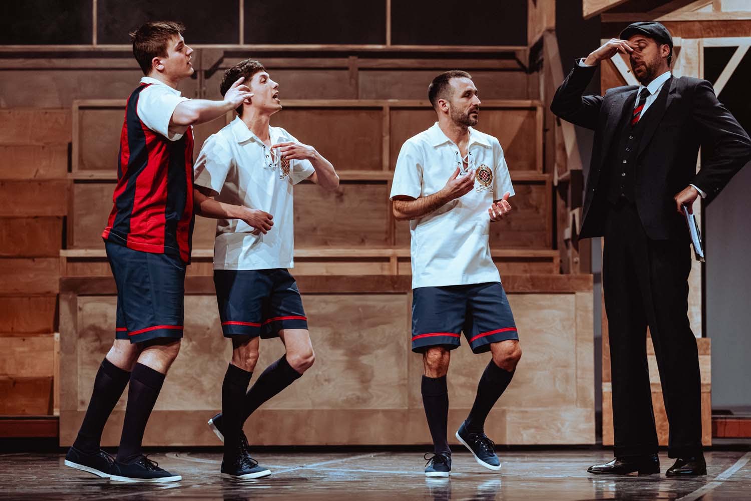 Ako postoji nešto bolje režirano i koreografski osmišljeno od utakmice Hajduka i E. F. C.-a „Manchester and Malta United“, čekamo s nestrpljenjem, ali načekat ćemo se. Fizička komedija proizišla iz slow-motion udaraca, komični stalni lik suca u izvedbi Matije Škilje, pa naposljetku najbolji plesni moment koji smo ikad vidjeli na kazališnim daskama – živa lopta koja saltom ulazi u gol – teško je zamisliti nešto bolje. Ako je suditi po pljesku publike, parirati mogu samo likovi Kikija i Fife, dva tipična „blentava“ Splićanina od kojih su Stipe Radoja i Bojan Brajčić napravili takav spektakl da bi ljudi vjerojatno čekali u redovima do autobusne stanice na Primi da vide i njihov spin-off. Dok je fokus na utakmici, Slavkovoj ozljedi, Milinu iskazivanju ljubavi i njihovu emotivnom duetu, Radoja i Brajčić na tribini kradu show, izvode Jack-Rose zagrljaj s „Titanica“, u pozadini gori bengalsko svjetlo… Operetna Liga prvaka.