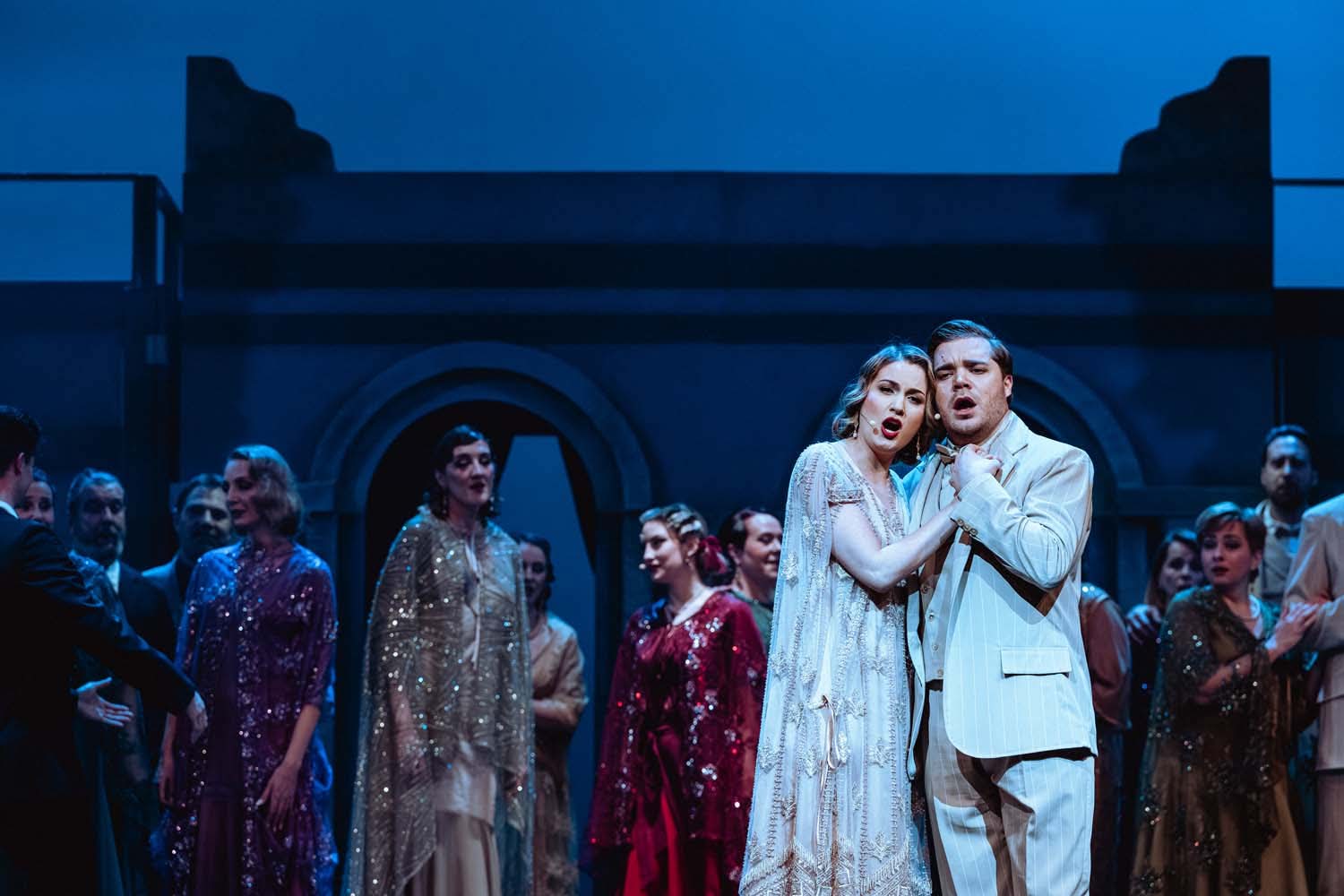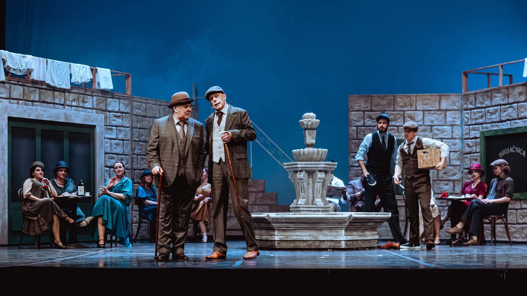 Treći par koji romantične zavrzlame dovodi do usijanja čine Sir Archibald Stanley (Andrija Nazlić) i Countess Alice (Branka Pleština Stanić). Nazlić je savršen kao groteskni Englez koji bi se, zabunom, jasno, pobio zbog ljubavne časti, pogotovo kad mu oficiri (Radoja i Brajčić) prilože „doukaz“. Kristalni sopran Pleštine Stanić, rezonantna tona i savršene dinamike, pjevački je crème de la crème ove izvedbe. Da je 2026., nismo zaboravili ni kad je krenulo suvremeno poljudsko skandiranje, imitacija zvuka bengalke i nesretna pošta koja čekajućoj Mili kasni pet godina (!), ali barem je poštar pritom oko splitske fontane otplesao svoje baletne manèges – ludo i genijalno u isto vrijeme.