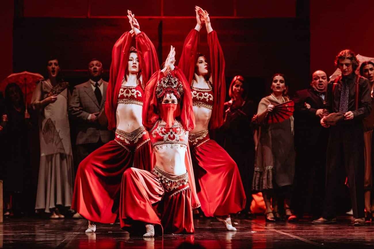 Vratimo se na onu „malu operu“, kad već ništa u „Kraljici lopte“ nije bilo malo. Režija besprijekorna, realistična, komična, jasno strukturirana, burleskno zabavna; adaptacija libreta poštena prema izvorniku, ali još poštenija prema izvođačima i publici ondje gdje su prvotna rješenja otvorila vremensko-prostorne rupe i uzročno-posljedične nelogičnosti; koreografija – najbolja koju je potpisnica ovih redaka ikad vidjela u HNK-u; kostimi živopisni, raskošni i funkcionalni; oblikovanje svjetla filmski scenično; scenografija slikarski lijepa i junački postavljana u brzim izmjenama različitih kolorita i ambijenata. Opereta puna smijeha, komike zabune i ljubavi, bez sižeovskih sinusoida i vrludanja, zabavna i svečana, takva da je publika, neka ne zamjeri, bila više stadionska nego kazališna. Nekima je možda i prvi put u kazalištu, fotoaparati bljeskaju gdje ne smiju, mobitela na sve strane, plješće se kad treba i ne treba, plješće se izvan ritma… Maestra Davora Kelića to ne dira, kapetan je zasjeo na svoj brod suvereno, uronjen u prekrasnu orkestralnu priču svečana zvuka, gdje se prpošnost splitske energije sudarila sa zavodljivim orijentalnim zvukovima. Nikomu ne bi bilo lako držati na okupu orkestar, zbor i soliste kad se neplanirano uključi torcidaški nastrojena publika iza leđa, gdje od pljeskanja više ne čuješ ni sama sebe, ali Kelić se u sekundi snalazi u tim zahtjevnim situacijama, čvrste ruke i jasna plana.