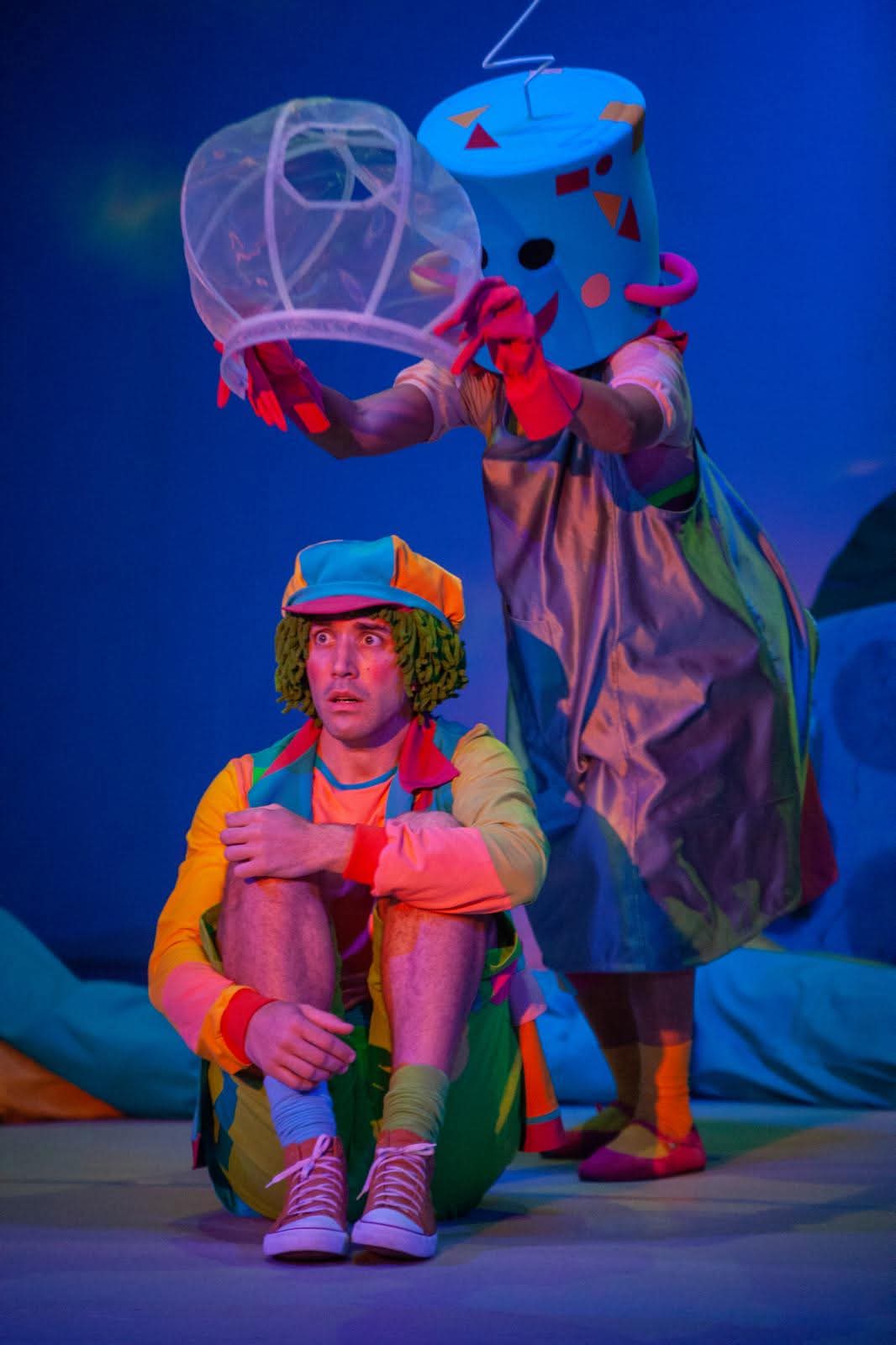 Jure Radnić upravo je savršeno osmislio scensku dinamiku predstave, koja je dodatno ojačana upečatljivim kostimima i funkcionalnom scenografijom. I oblikovanje svjetla bilo je besprijekorno, posebno u trenutku kad je blistava zelena označila svježu misao i ideju dječaka Darka da se preko redu progura u Brankinu letjelicu, ili kad je isključivo svjetlosnom igrom čitava pozornica bljesnula kao noćno nebo. Glumački kvartet u ulozi Mjesečara dvostruko opravdava svoj naziv – oni se kreću između snova i jave (vizualizaciji pomažu i dvobojni kontrastni kostimi), a funkcioniraju i kao promatrači i pomagači u srazu djevojčice Branke i malicioznog Darka. Međutim, glumački angažiran nastup nikako ne dopušta promatranje kroz tobožnju sporednost njihovih uloga. Majica, Blažanović, Rakić i Medić pronalaze svoja snažna glumačka mjesta u ekspresiji lica, mekoći preobrazbe, smislu za komiku, protočnosti pokreta i skladu kolektivne igre. Time su snažan vjetar u leđa kolegici Justini Vojaković-Fingler, koja je izuzetno šarmantno nosila ulogu malene mudrice Branke, izumiteljice obavijene ružičastom, čiji su entuzijazam i kreativna energija zarazni. Njezin je scenski pokret najatraktivniji, izvlači maksimum iz sjajne glazbe koja pleše na rubu svemirske elektronike i holivudskih klavirskih ritmova 20-ih, posebno je vješta u suptilnim naglascima sinkopiranih skokova, a rad ruku dodao je dašak elementa žive lutke. Sitan pomak obrve ili osmijeh dovoljni su da i najmlađi gledatelji shvate je li Branka u fazi „mozganja“, igranja ili sitnog, ali svrsishodnog kalkuliranja oko primjerene osvete Darku.