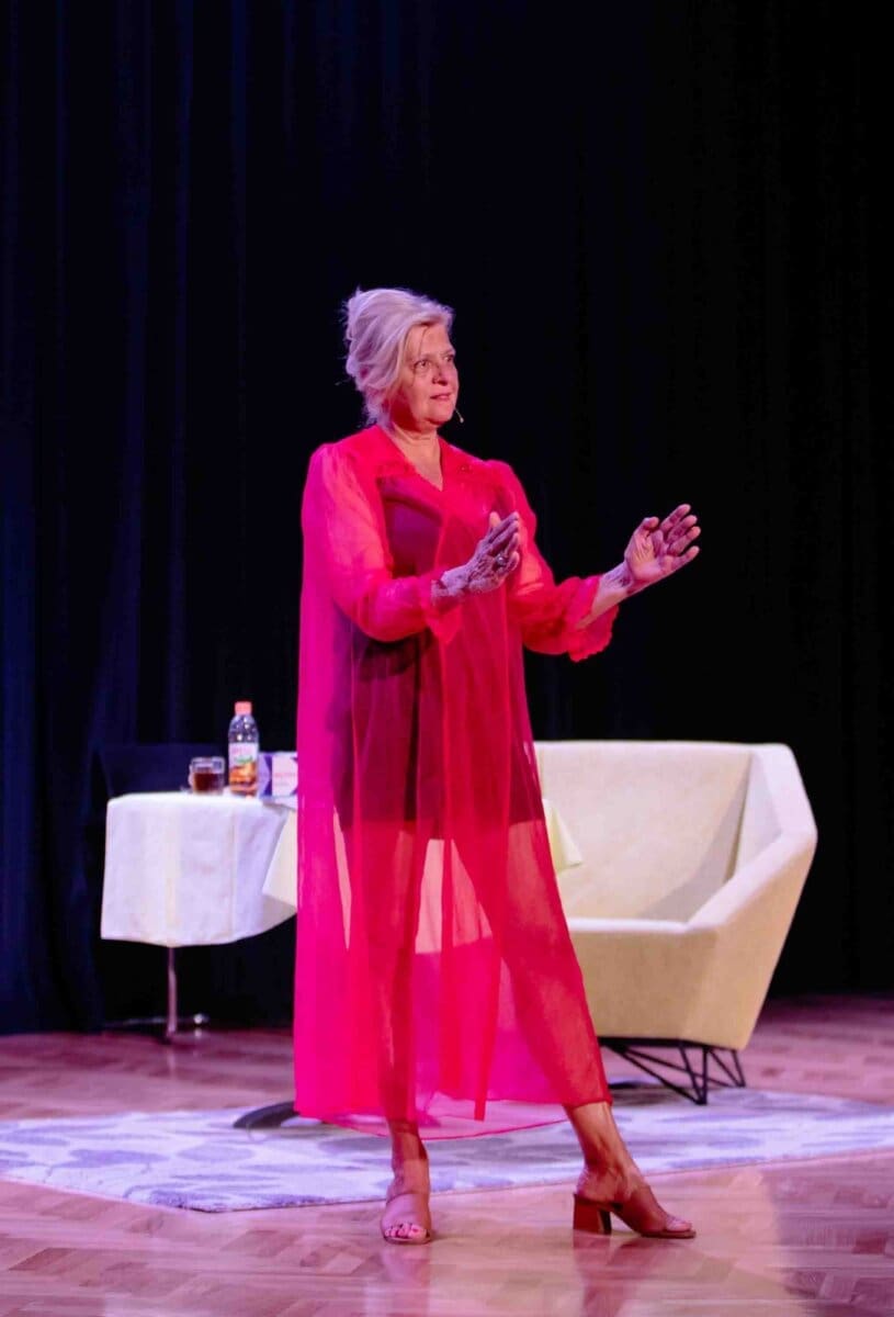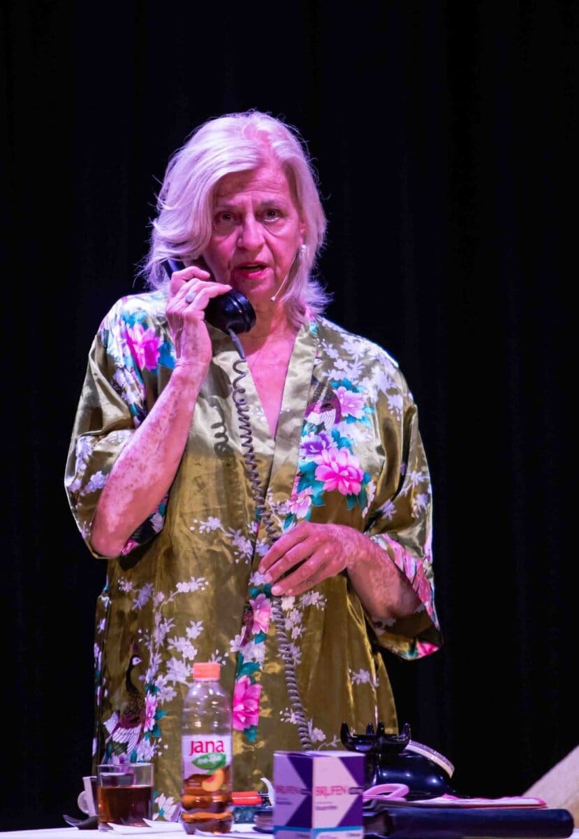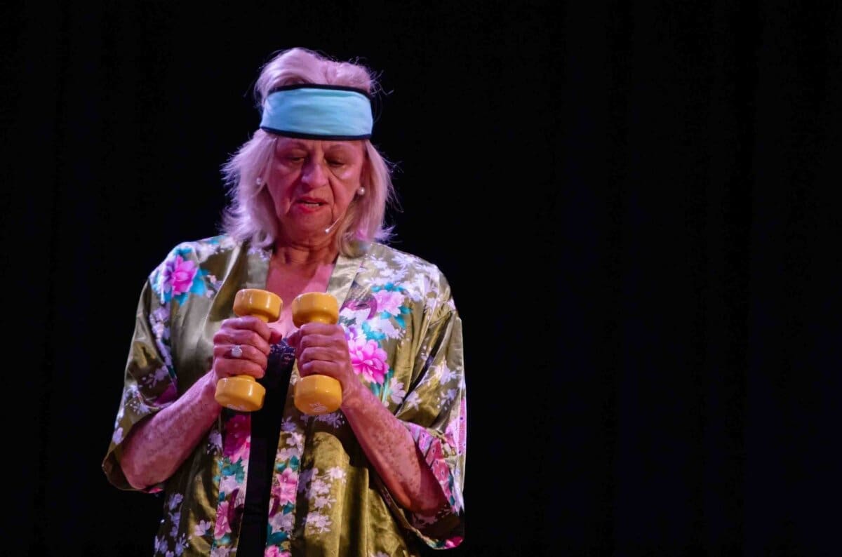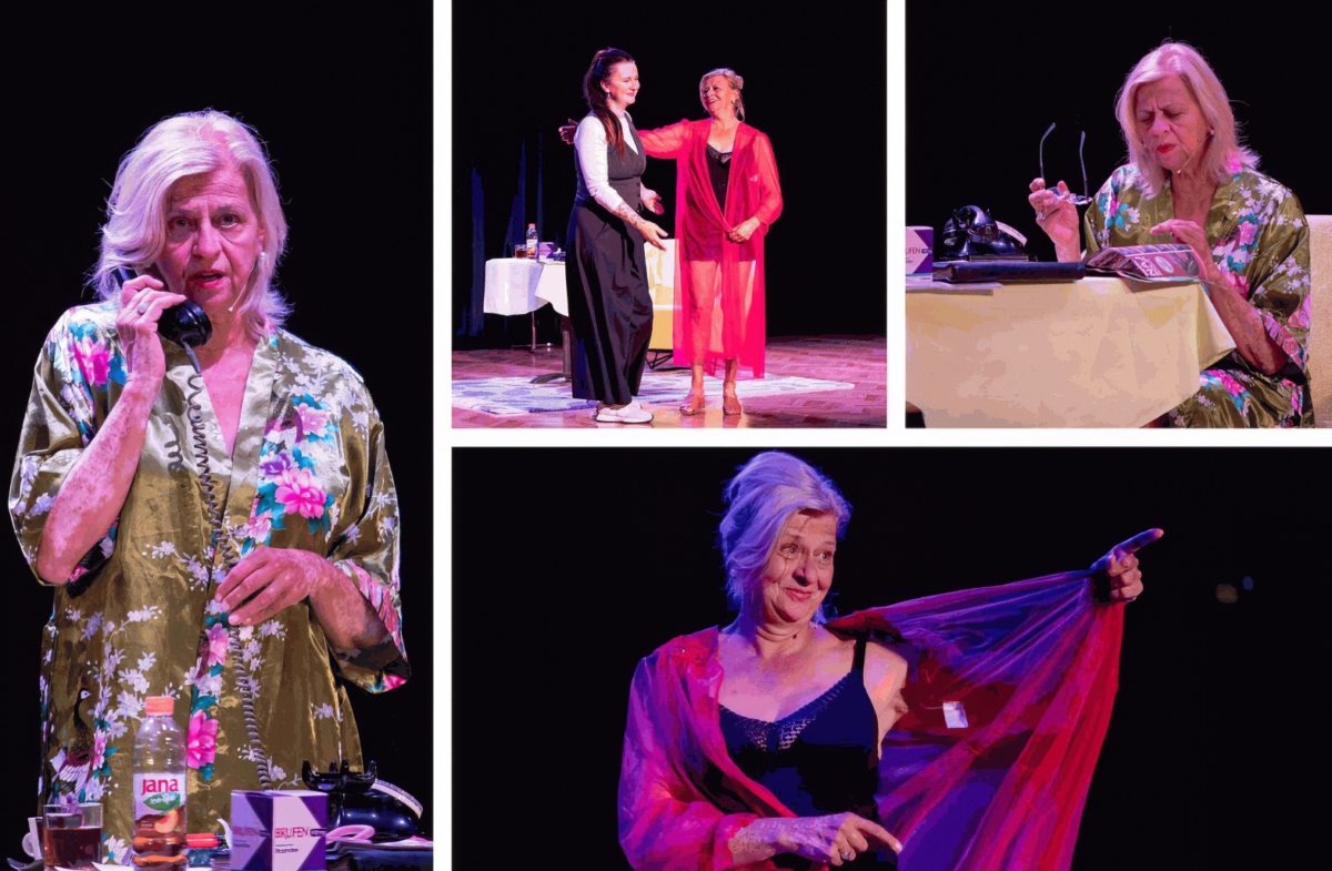 Lily Olga Vladić utjelovljuje ženu koja se pokušava prilagoditi da se osjeća bolje. A osjeća se loše samo zato što se uspoređuje s drugima. Izvodi jogu, isteže se i diže utege iako preferira pozu „krepane pantagane“, a poticaj je razmišljanje o tuđim savršenim tijelima. Tuđe isfenirane kose frustriraju njezine čuperke, tuđe zategnute kože tjeraju je da se maže „sve mekšim mazalicama po sve nagrišpanijoj faci“. Jedina eksplicitna eksklamacija naslovnoj (anti)junakinji kučki bit će ona u kojoj telefonska sugovornica nazove protagonisticu klimakteričnom babom. Na prvu – reakcija na tako malu uvredu čini se par excellence potezom upravo tog mitskog prototipa klimakterične babe – e kad ne bismo živjeli u svijetu u kojem ti se koža smije osušiti, mišići objesiti, salo ugnijezditi na dijelovima na kojima je toliko prirodno, bore urezati godove godina i životnih iskustava.