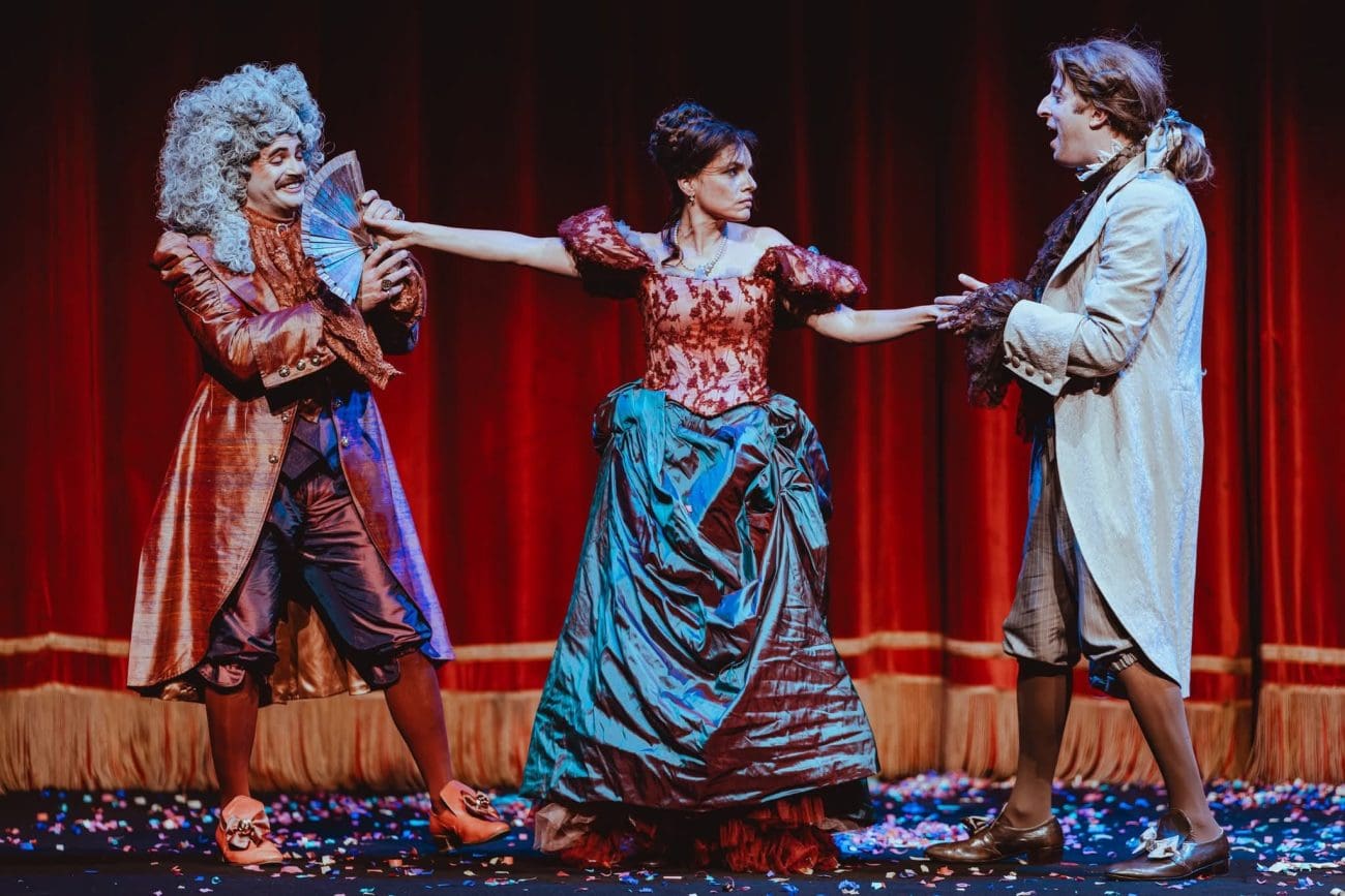 Nadalje – aspekt podjela uloga, rad na ulogama i redateljsko čitanje glumca. Dugogodišnji gledatelj splitskog nacionalnog kazališta te ljubitelj Drame sigurno se nakratko hrvao s mišlju – podjela je uloga mogla izgledati drugačije. Poznavajući Molièreove likove, neki bi od nas već u glavi mogli s istim ovim glumcima napraviti veliku rošadu. I dobili bismo rješenje koje očito treba početi izbjegavati, za dobro glumaca koji su bijelo platno, podatni i funkcionalni, a ne ukalupljeni u tipske likove. Mijo Jurišić, nama vječno Bérenger iz „Nosoroga“, ovdje je sve suprotno – bizarni markiz, partijaner i laskavac, lik kojeg glumac veličanstveno savija u bogatog beskičmenjaka, ali, dovraga – beskrajno je smiješan. I djeluje kao da se nikad nije bolje zabavljao stavljajući svoje ideje u cipele svoga lika. Što reći o Stipi Radoji, koji je u predstavicama kakvih je bilo mnogo praktički pretplaćen na uloge kvartovskih momaka i siledžija, a u „Crvenoj vodi“ emocionalno je rasuo publiku i opet je sastavio, odigravši nešto što je bilo vrijedno svih glumačkih nagrada koje su bile u ponudi, ali toj mračnoj temi nećemo pridati više ni retka. Taj „gradski i kvartovski“ Radoja s tolikom je vještinom i angažmanom odigrao feminizirana markiza, fićfirića i banalna kicoša kojega želite udariti lepezom da mu se onaj čipkasti ovratnik okrene, gdje je karikaturalnost ispolirana do blještavila, tako da predstavu gledate s rukom na ustima, da publika ne djeluje stadionski glasno u smijanju i odobravanju, kad su već podjele uloga kroz povijest morale bivati stereotipne.